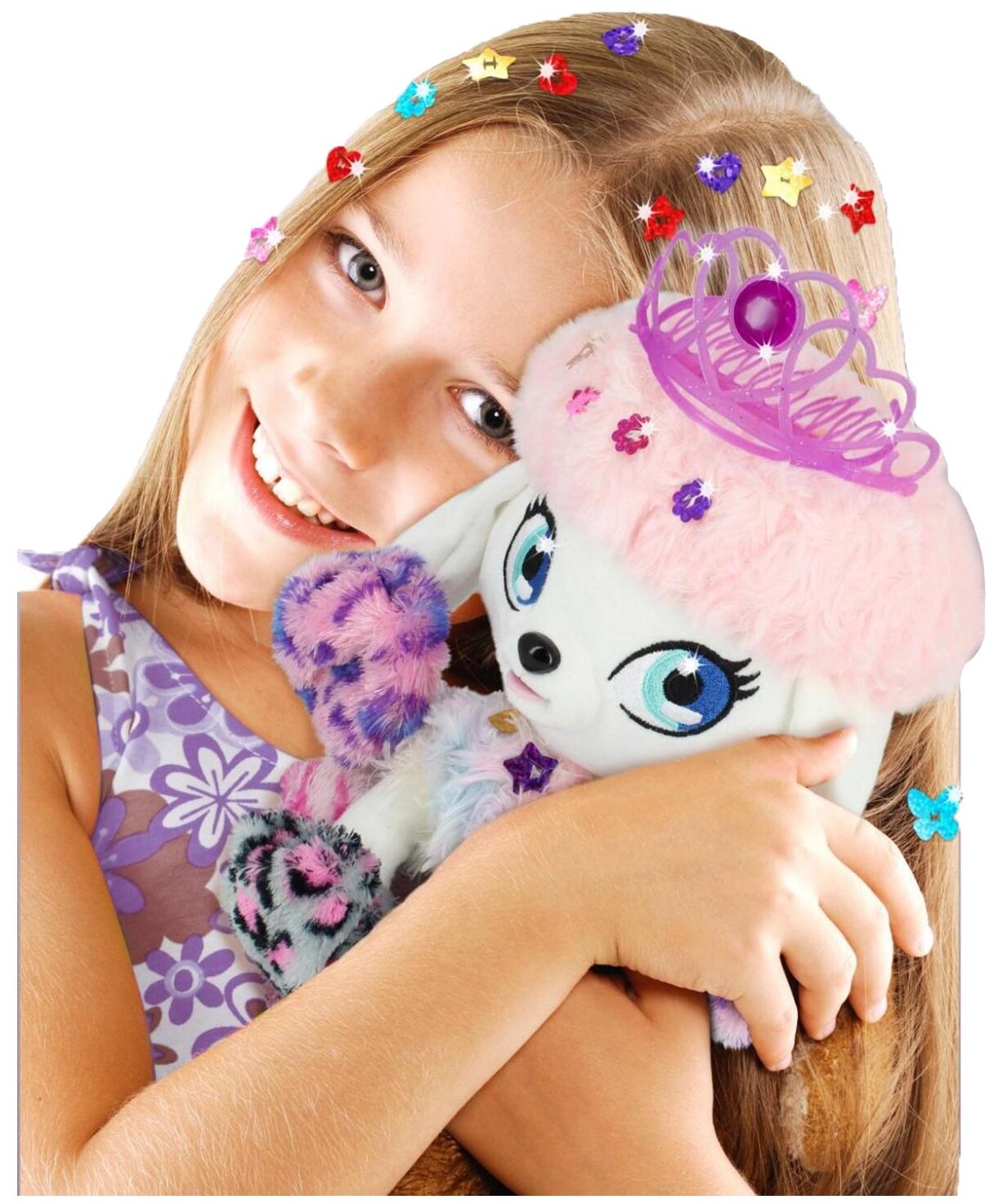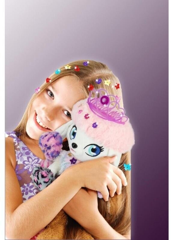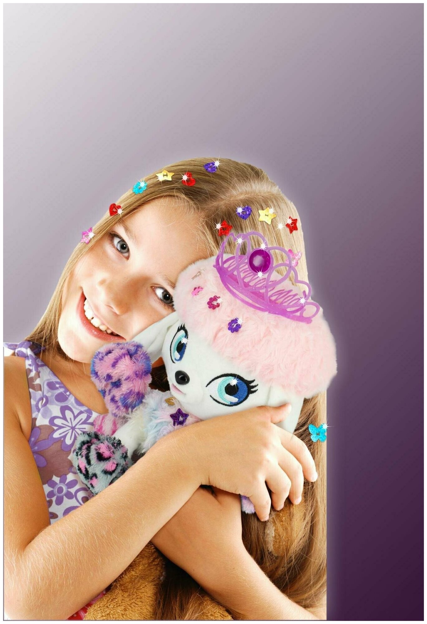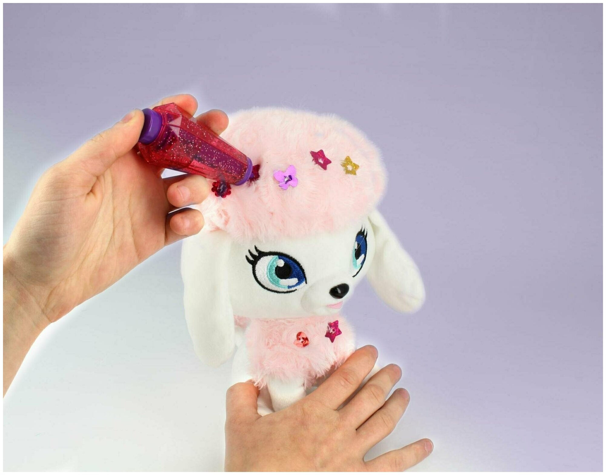В наборе 16 стильных аксессуаров, с помощью которых можно менять цвет лапок, хвостика, ушек и накидки. Также в комплекте есть диадема и шиммерайзер, с помощью которого можно украшать пуделя блестками, их в наборе более 200 штук!