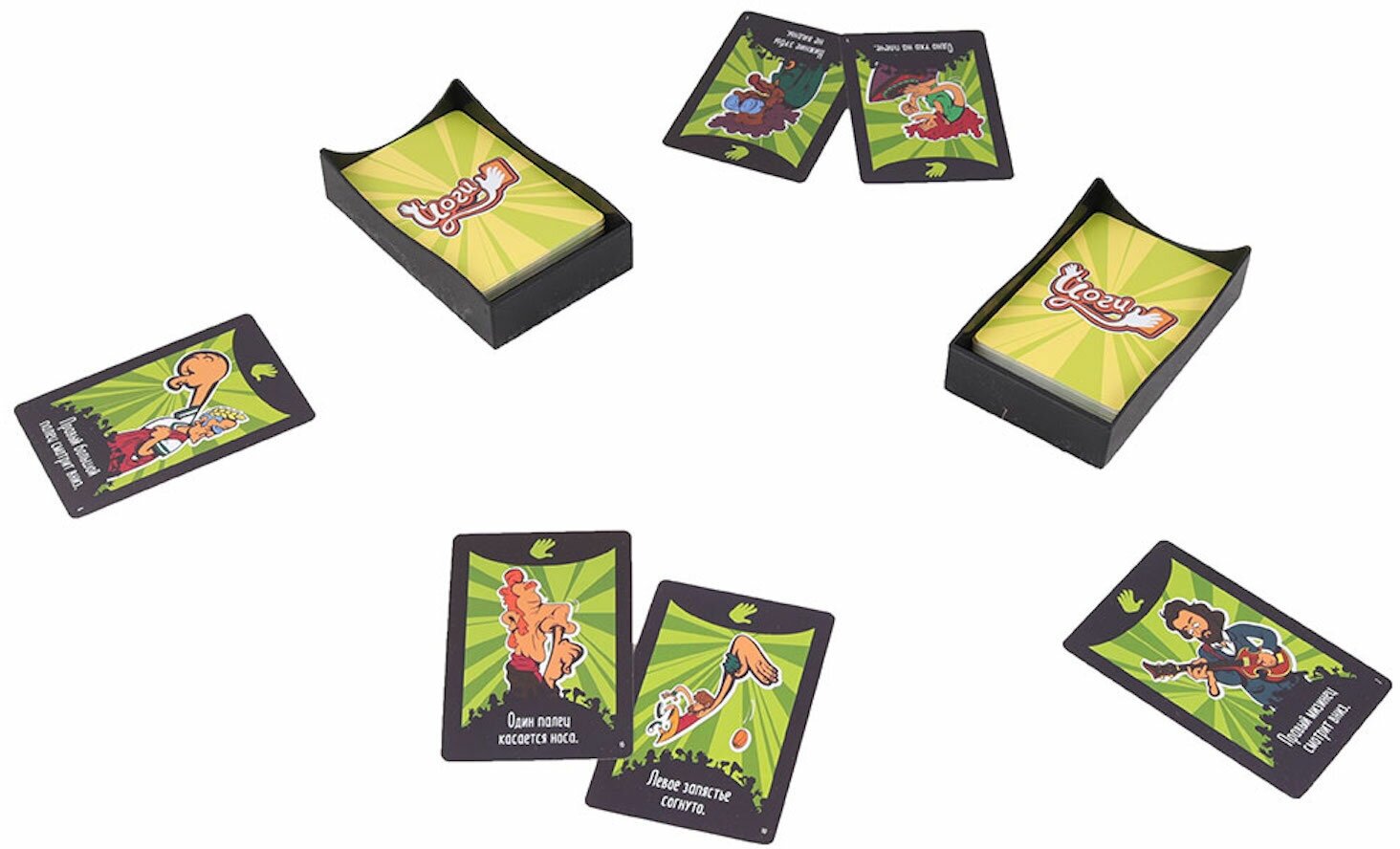 В настольной игре Йоги игроки соревнуются, изображая своими телами причудливые и необычные фигуры. В идеальном варианте нужно сделать это лучше другого игрока (других игроков). Высшим пилотажем будет изобразить из себя крендель!