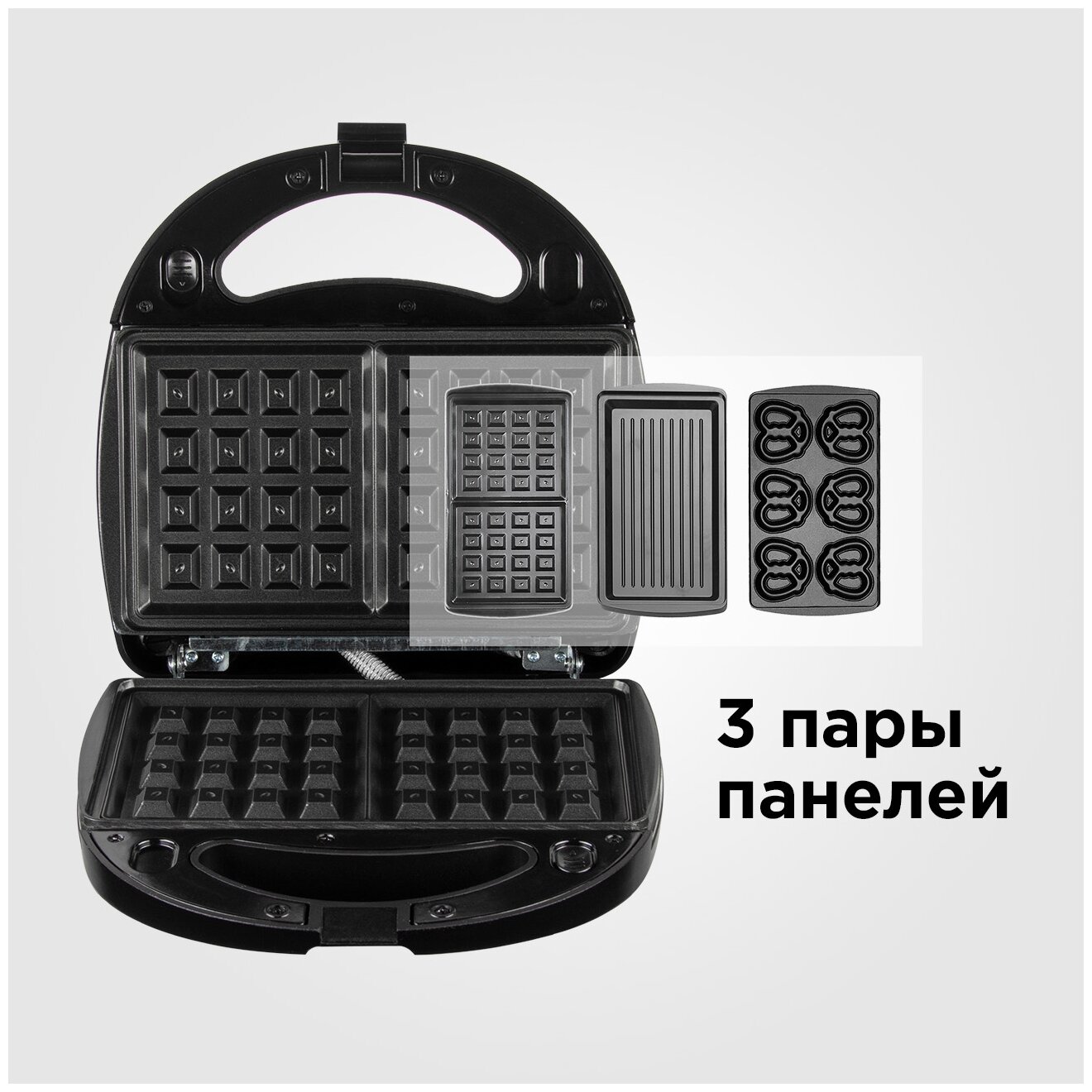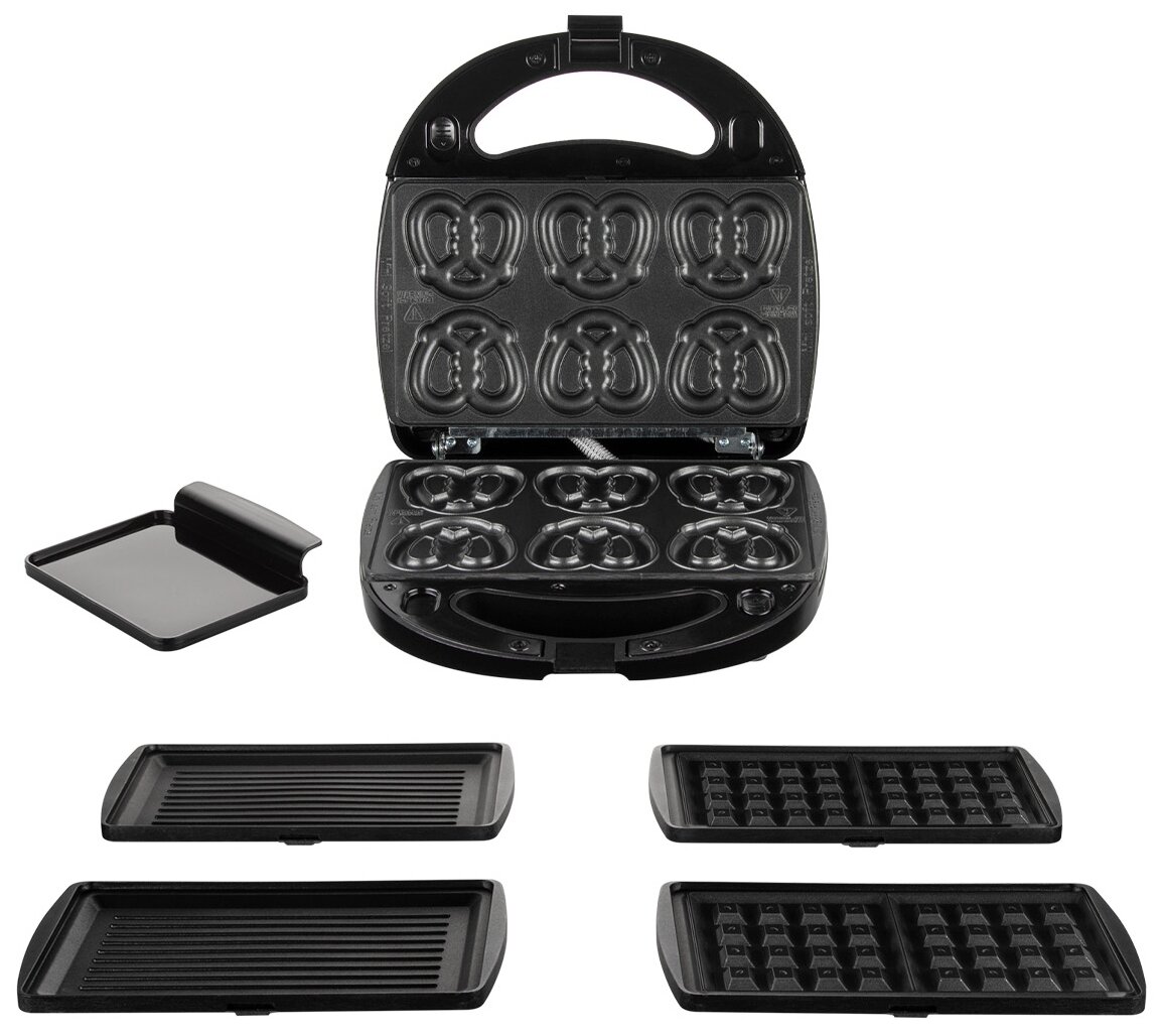 | Дополнительно | 3 комплекта съемных панелей (гриль, крендель малый, вафельница) |