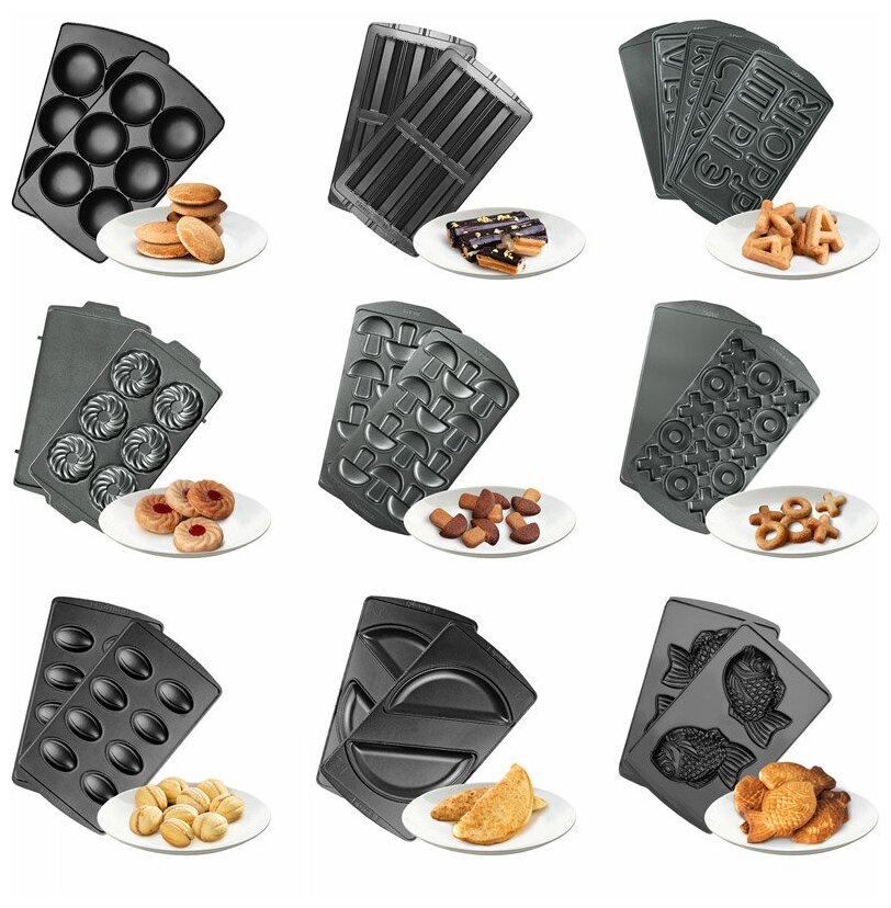 Достаточно просто поменять пресс-форму, и вы получите новое устройство для приготовления популярного блюда! Ароматное печенье, крекеры, сочни или омлет с итальянскими травами, пицца, пряничный домик для детского праздника, горячие бутерброды или овощи-гриль для гарнира – все это мультипекарь приготовит в считанные минуты!