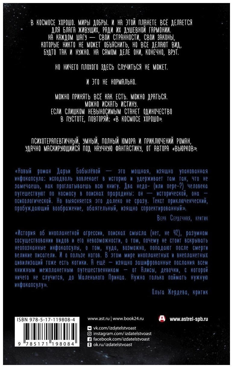 Можно принять всё как есть. Можно драться. Можно искать истину. Если слишком невыносимым станет одиночество в пустоте, повторяй: "В космосе хорошо".