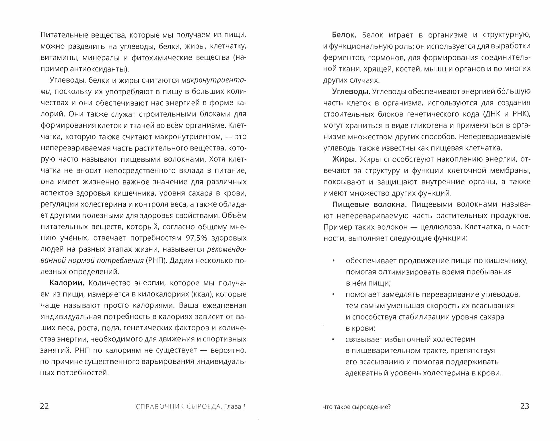 Интересная, содержательная книга по сыроедению. Собрано большое количество информации в области сыроедения. Можно узнать о том, как набирать белки, углеводы, полезные жиры, витамины, микроэлементы и др. Можно назвать действительно справочником в области вегетарианства и сыроедения.