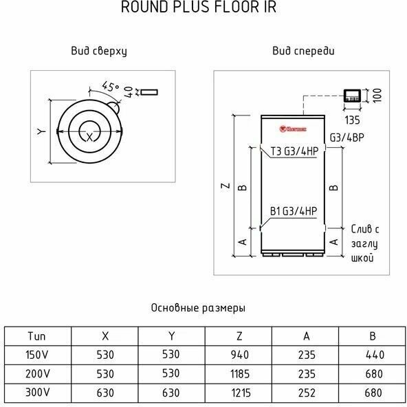 Накопительный водонагреватель Термекс IR 300 V – эконом-класс, обновленный дизайн, бак из нержавеющей стали, несколько режимов мощности, вертик. исполнение, напольный монтаж, гарантия 7 лет. Накопительные электроводонагреватели Термекс серии ROUND PLUS - это усовершенствованное продолжение популярных приборов Thermex Round. Такие устройства гарантируют потребителям быстрый нагрев и поддержание заданной температуры горячей воды.