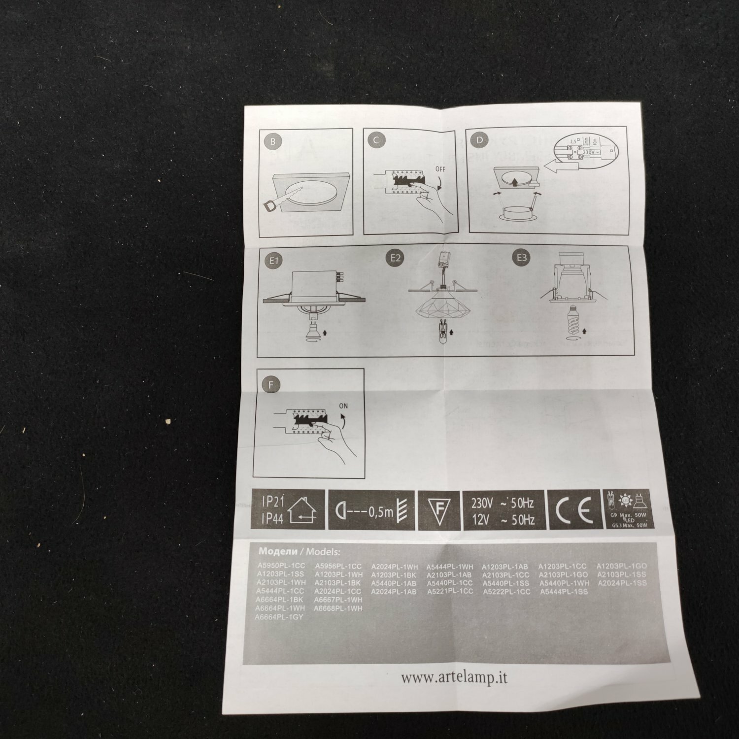 | Максимальная допустимая мощность лампы (Вт) | 50 |