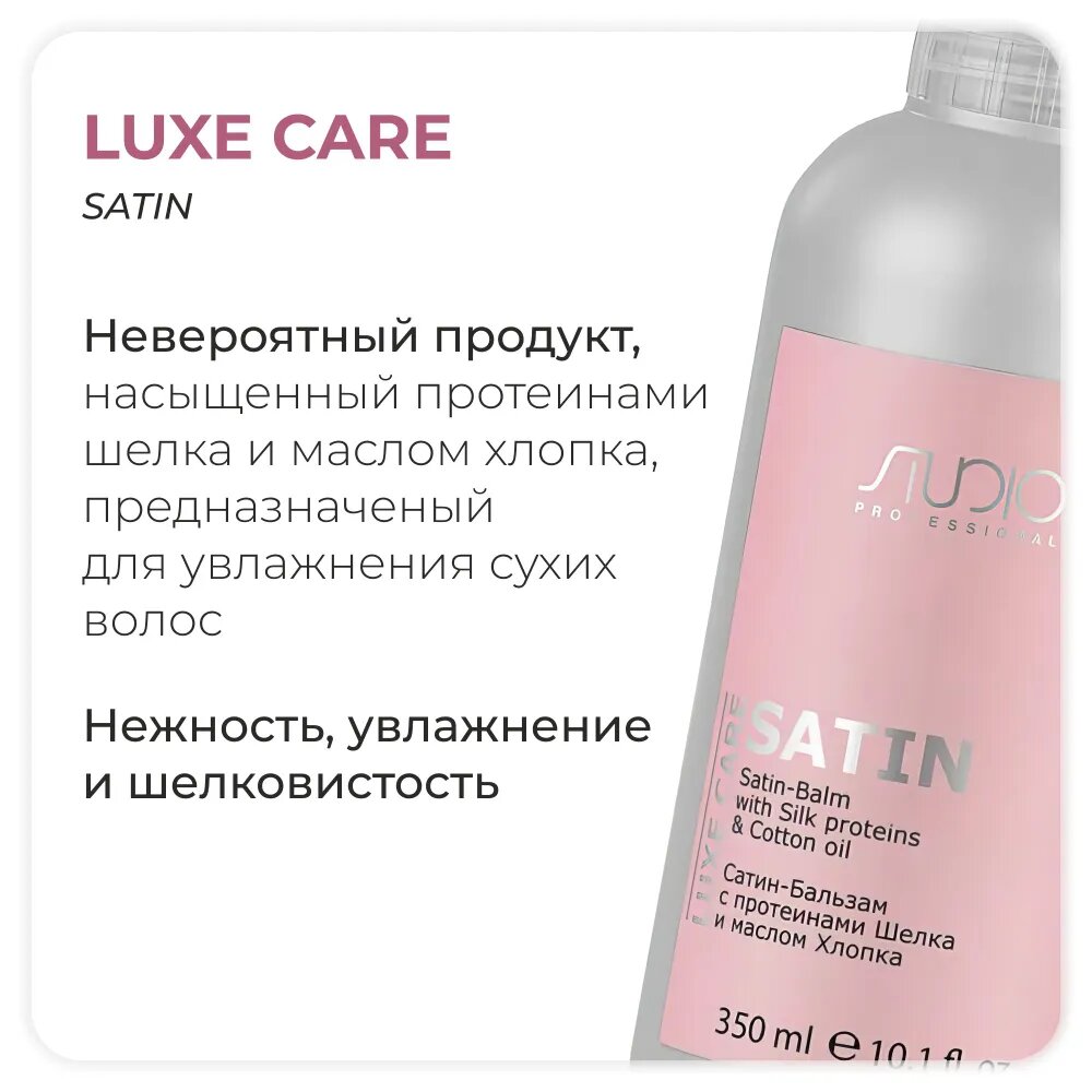 | Способ применения | После использования "Сатин-Шампуня" нанести бальзам на влажные волосы. Оставить на 3-5 минут, смыть. Подходит для частого использования. |