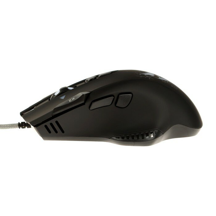 Компьютерная проводная игровая мышь Devastator выделяется прежде всего размером. Мышка выглядит массивно и строго. Этот игровой манипулятор рассчитан под плотный хват и эргономически выверен по форме. В результате все управляющие элементы хорошо ложатся под пальцы, а сама рука плотно лежит на поверхности. Сочетание черного корпуса и серой верхней вставки выглядит строго и эффектно. Подсветкой устройство не перегружено, свечение мягкое а цвета чистые. В мышке есть выделенная кнопка "Fire" для применения в играх. Поверхность пластика soft-touch приятно ощущается в руке и на ней не остаются следы пальцев. Кабель в оплетке обладает оптимальной жесткостью и дает возможность избежать помех при быстрых движениях мышки в динамичных играх. Подсветка динамически изменяется, переливаясь всеми цветами. При подключении мышь работает как обычное устройство Plug-n-Play.