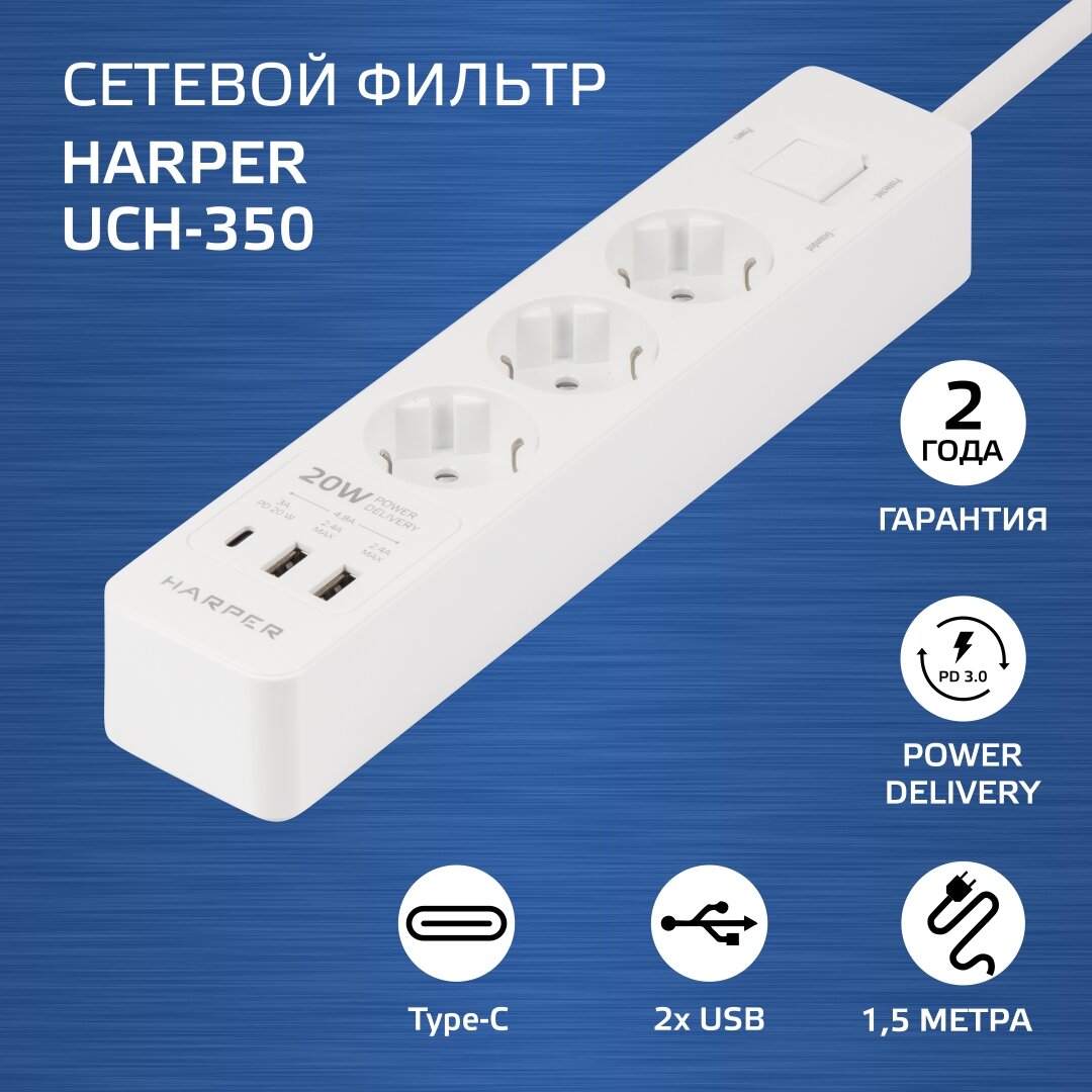 Сетевой фильтр HARPER 1.5м белый UCH-350