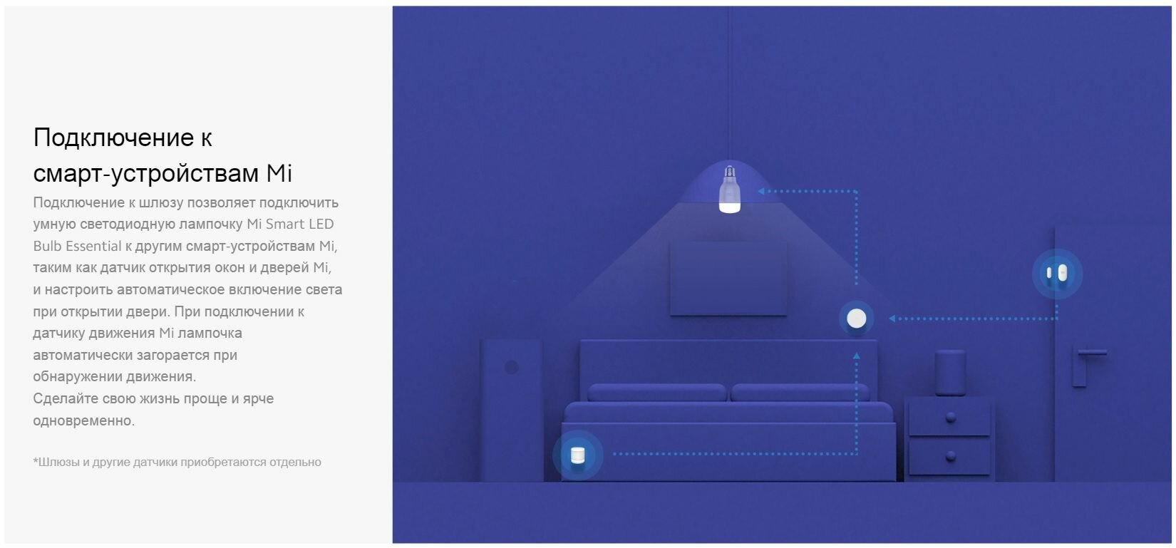 Умная светодиодная лампочка с удалённым управлением по Wi-Fi с помощью приложения Mi Home APP может работать по расписанию и управляется голосом.