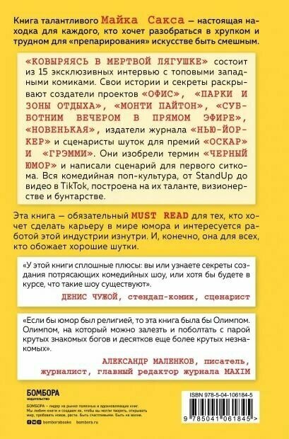 Сервис сравнения цен СкидкаГИД предлагает сравнить цены на товар «Книга: Ковыряясь в мертвой лягушке: инсайды от топовых комедийных авторов (Мишель Сакс); Эксмо, БОМБОРА, 2020»