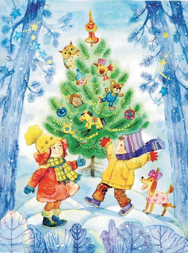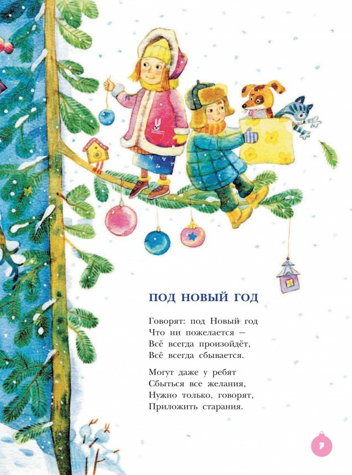 Помните? Говорят, под Новый год, что ни пожелается, все всегда произойдет, все всегда сбывается! И снег, которому рады зверь и птица и, конечно, человек! И елки! История про маленькую елочку, которая так боялась, что ее срубят перед праздником, рассказана даже два раза - в стихах и в прозе. Нет, не подряд, между ними есть другие истории. У ребенка есть возможность узнать знакомый сюжет.