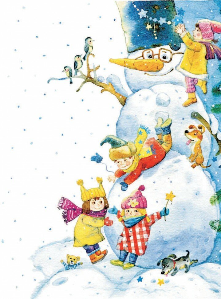 Книга хорошая, стихи замечательнее, сюжетных рисунков много и они крупные, шрифт тоже крупный, пойдет и для чтения деткам. Единственное что не понравилось, так то, что в рисунках много желтого цвета. И он смотрится как осенний. Для меня зима бело-голубая-розовая, ну и конечно желтый, но немного другой чем здесь. Ну это дело вкуса.. А так книга нам понравилась, читали уже пару раз.