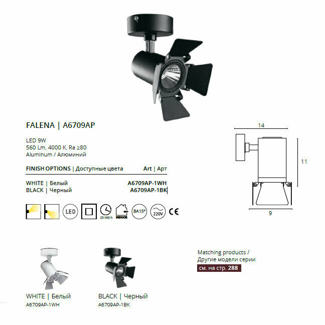 Спот потолочного типа собранный в Италии на заводе Arte Lamp, который идеально подходит для магазина в итальянском стиле, в стиле модерн, в современном стиле. В модели применяются светодиодные лампы с цоколем led в количестве 1 штуки.