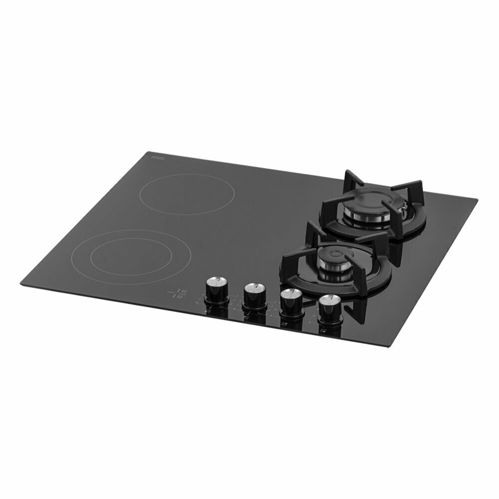 Комбинированная варочная панель Simfer , оснащенная двумя газовыми и двумя электрическими конфорками - настоящая находка для любящих эксперименты людей, так как комбинирование источников тепла предоставляет довольно обширные возможности для всех хозяек, которые вынуждены или любят много готовить. Благодаря небольшим размерам и лаконичному дизайну эта модель впишется в интерьер любой кухни. Материал рабочей поверхности - жаростойкое закаленное стекло, которое имеет красивый зеркальный вид.Управление варочной панелью осуществляется посредством четырёх поворотных переключателей, в которые встроен электроподжиг, значительно упрощающий работу с панелью. Дополнительным достоинством варочной поверхности является наличие функции газ-контроль конфорок, отключающей подачу газа при затухании пламени. Комбинированная варочная панель Simfer стильный и функциональный прибор, который поможет вам готовить самые разнообразные блюда!