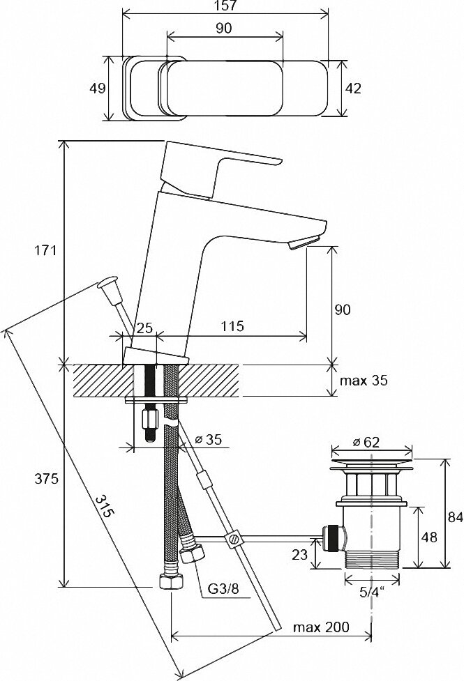 | Диаметр отверстия в раковине | 35 |