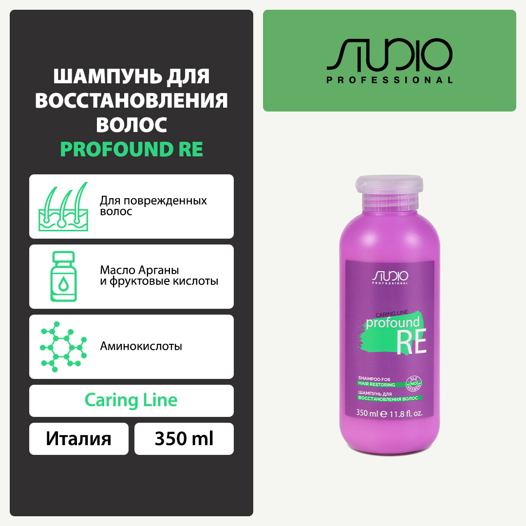 Способ применения: Нанесите небольшое количество шампуня на влажные волосы. Вспеньте, распределяя по всей длине волос в течение 2-4 минут, смойте теплой водой. При необходимости повторите процедуру. После мытья нанесите на волосы бальзам для восстановления волос «Profound Re» серии «Caring Line».