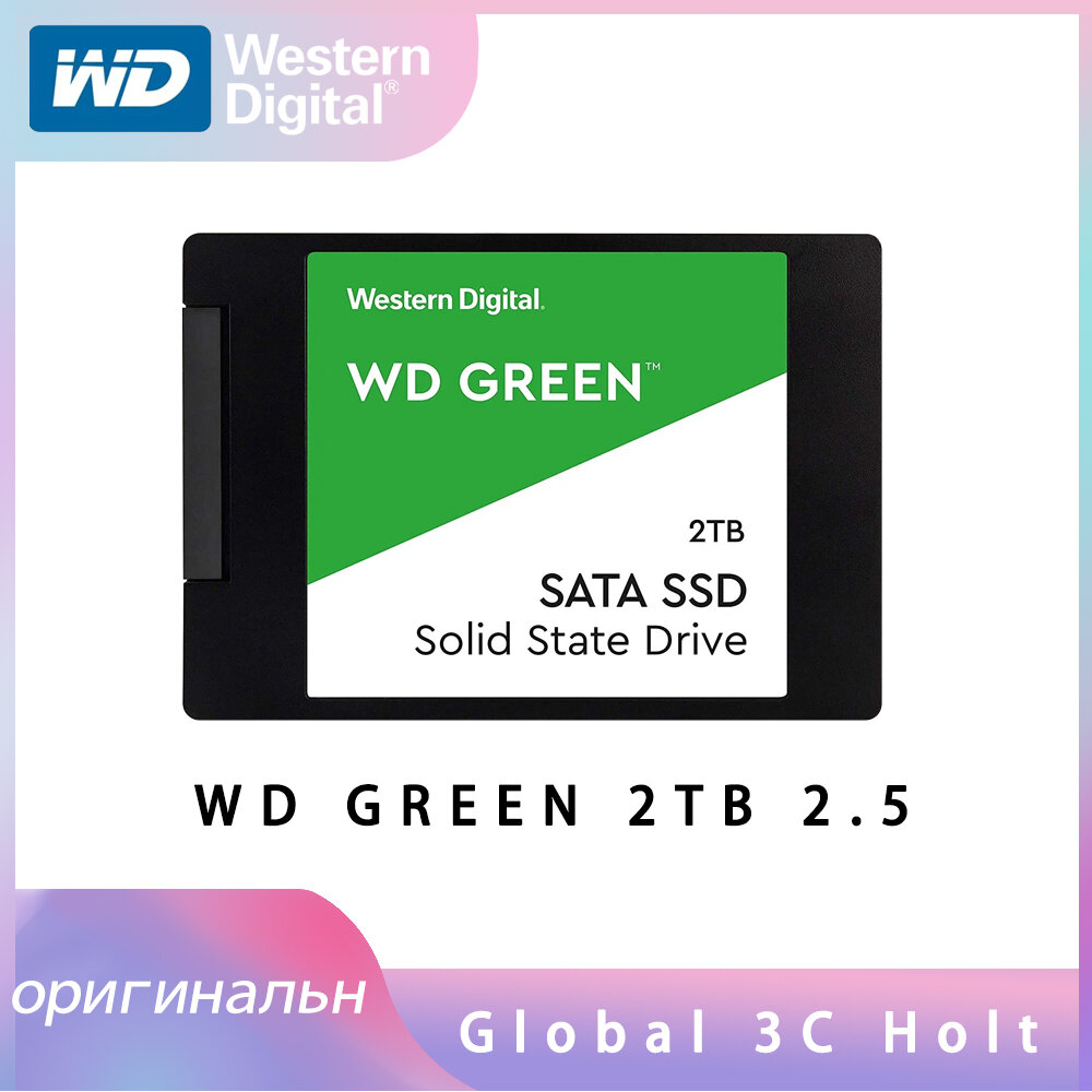 SSD-накопитель WD Green [] является быстрым и надежным запоминающим устройством, благодаря которому можно существенно повысить показатели отзывчивости системы на выполнение различных запросов. Обладающий объемом 2000 ГБ, накопитель обеспечивает размещение весьма большого количества файлов. Накопитель оснащен флэш-памятью стандарта TLC 3D NAND и контроллером от SanDisk. Максимальная скорость в режиме последовательного чтения достигает показателя 545 Мбайт/сек. Выполненный в форм-факторе 2.5 дюйма в корпусе толщиной 7 мм, накопитель WD Green характеризуется широкой совместимостью с настольными компьютерами и ноутбуками. Время наработки на отказ 1 млн подчеркивает стабильность и надежность в процессе эксплуатации.