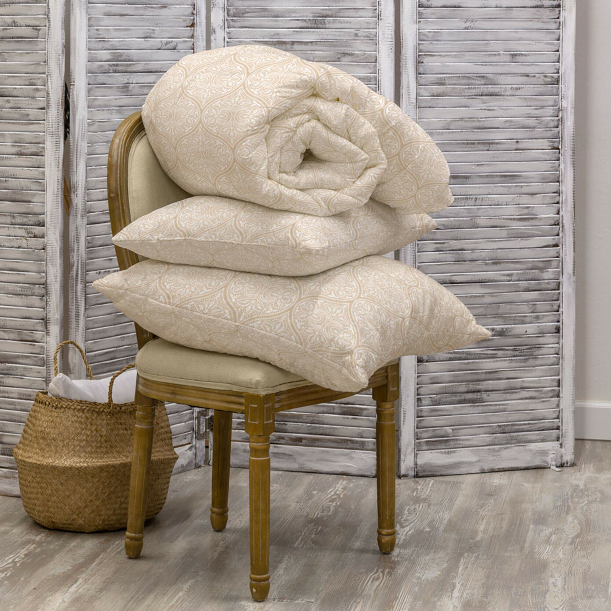 Все изделия отшиты из плотной и прочной ткани из натурального хлопка, позволяющёй обеспечить лучший микроклимат для сна. Эксклюзивные дизайны специально разработаны для коллекции подушек и одеял Волшебная ночь.