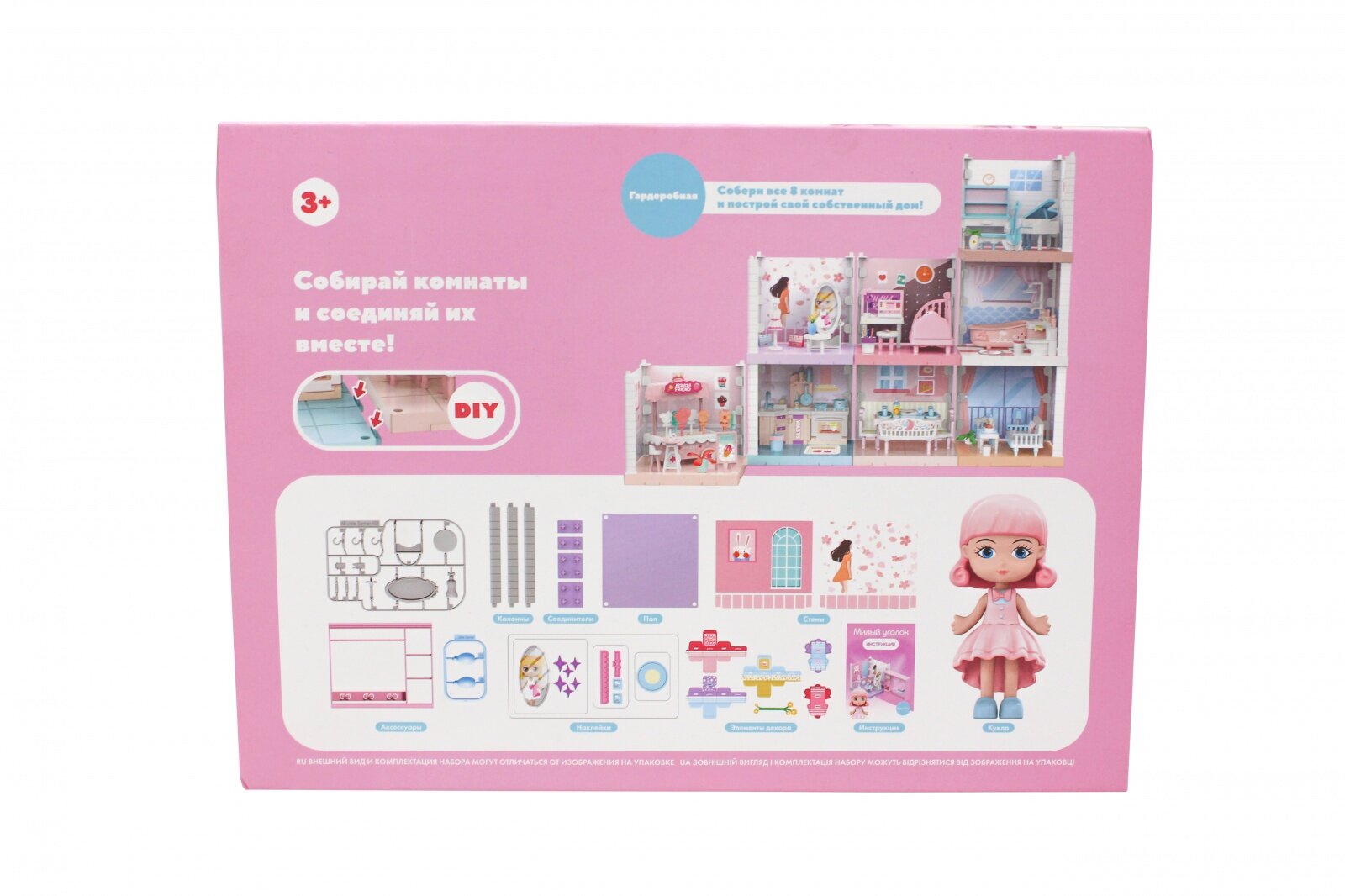 С помощью входящих в набор аксессуаров и элементов декора Вы сможете собрать целую гардеробную для куколки Ангелины! В такой комнатке Ангелина будет выбирать свои любимые наряды и наряжаться в них. Собрав одну комнату, Вы сможете присоединить ее к остальным и построить целый дом!