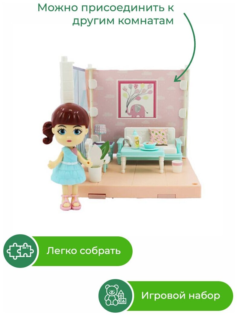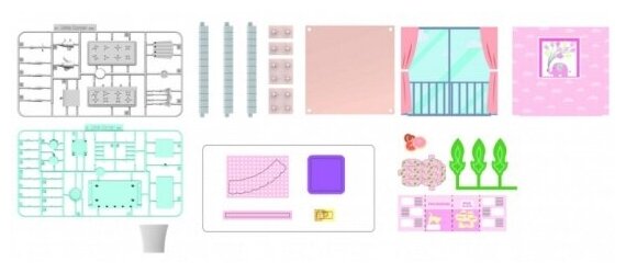 С помощью входящих в набор аксессуаров и элементов декора Вы сможете собрать целую гостиную комнату для куколки Наны! В такой гостиной она сможет смотреть любимые мультфильмы и играть в игрушки. Собрав одну комнату, Вы сможете присоединить ее к остальным и построить целый дом!