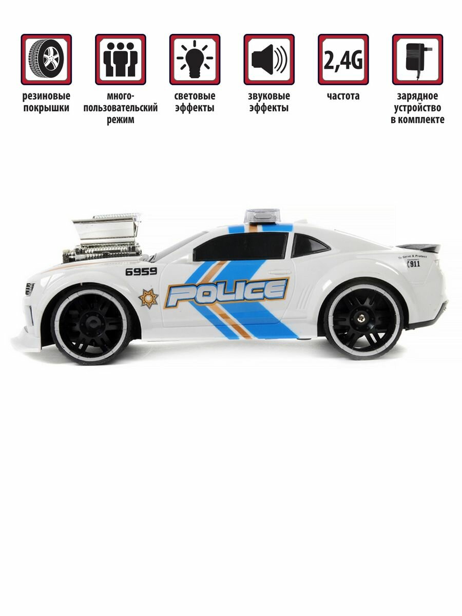 Машинка на радиоуправлении Полиция. Движение во всех направлениях. Резиновые покрышки. Многопользовательский режим. Звуковые и световые эффекты. Частота 2,4GHz.