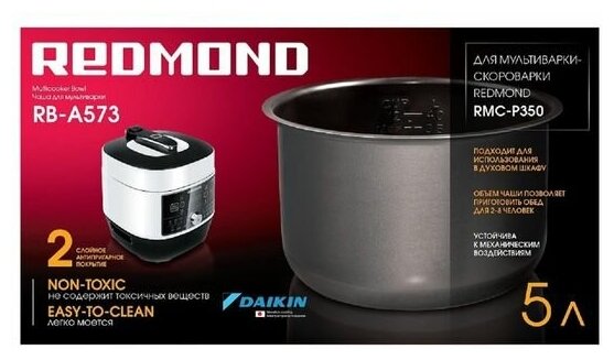 | Дополнительная информация | чашу возможно использовать как в мультиварке-скороварке Redmond, так и в духовом шкафу |