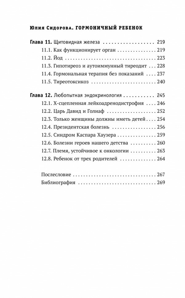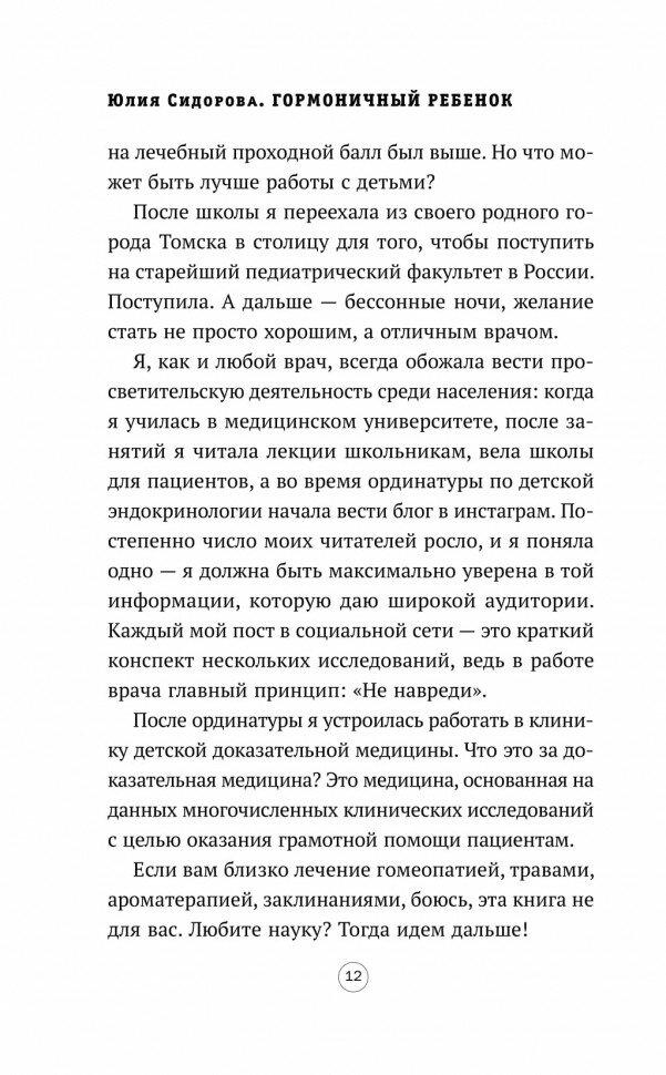 Низкий рост, проблемы с весом у ребенка, дефицит витамина Д, заболевания щитовидной железы, ожирение, сахарный диабет… как предупредить эти состояния, как профилактировать, и что делать, если были обнаружены отклонения от нормы. Эта книга - путеводитель по гормональному здоровью ребенка от зачатия до подросткового периода. Книга предназначена для людей, которые хотят понять, что происходит с гормонами у детей в разные возрастные периоды, разобраться, когда стоит бить тревогу, а когда достаточно наблюдения. Это книга-гид, в которой описываются все тайны и загадки детского организма, она будет полезна в том числе родителям деток, у которых есть заболевания эндокринной системы. - Как беременность может повлиять на будущее здоровье ребенка - Как следить за массово-ростовыми показателями малыша - Что такое стресс и как его избежать - Как связана вакцинация и заболевания эндокринной системы - Половое развитие у девочек и мальчиков: что есть норма, а что требует внимания специалиста? А также советы по организации питания, сна, досуга у детей. Юлия Сидорова - это молодой врач-детский эндокринолог, занимающийся популяризацией медицинских знаний и науки. Юлия ведет свой блог в Инстаграм уже несколько лет и точно знает, какие вопросы волнуют молодых родителей. Вся информация написана доступным языком, не смотря на использование медицинской терминологии. Юлия Сидорова - детский врач-эндокринолог, автор популярного блога в «Инстаграме» (@j.sidorova - более 48 тыс. подписчиков) в своей книге отвечает на множество вопросов, которые волнуют родителей: Как предупредить проблемы с весом у ребенка, дефицит витамина Д, заболевания щитовидной железы, ожирение, сахарный диабет? Как бороться с гормональными заболеваниями, которые не удалось предотвратить? Как беременность может повлиять на будущее здоровье ребенка? Как следить за массово-ростовыми показателями малыша? Что такое стресс и как его избежать? Как связана вакцинация и заболевания эндокринной системы? Половое развитие у девочек и мальчиков: что есть норма, а что требует внимания специалиста? Как правильно организовать питание, сон и досуг у детей?