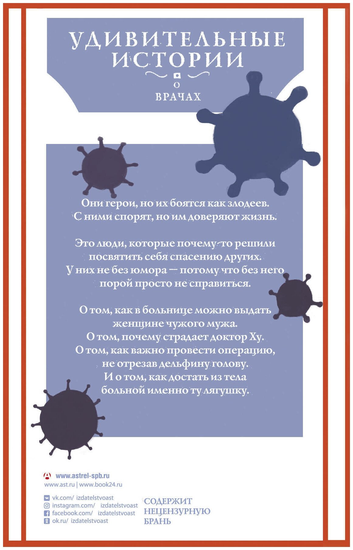 Они герои, но их боятся как злодеев. С ними спорят, но им доверяют жизнь. Это люди, которые решили посвятить себя спасению других. У них не без юмора - потому что без него порой просто не справиться. О том, как в больнице можно выдать женщине чужого мужа. О том, почему доктор Ху в американском госпитале страдает больше пациентов. О том, как важно провести операцию, не отрезав дельфину голову. И о том, как достать из тела больной именно ту лягушку. Удивительные истории. О врачах.
