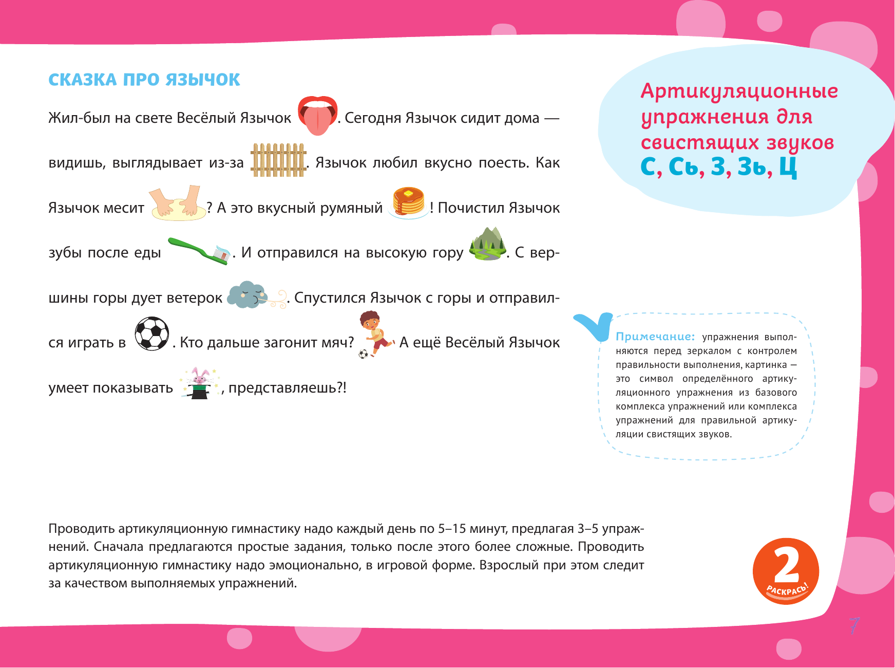 - на внутренней стороне обложки есть иллюстрированная речевая гимнастика, которую рекомендовано выполнять перед каждым занятием;