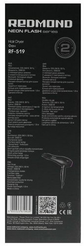 Фен Redmond - элегантная новинка в чёрно-розовом цвете из серии NEON FLASH, имеющая три оптимальных температурных режима и две скорости воздушного потока. Для большего удобства прибор имеет кольцо для подвешивания. Используйте и храните этот мощный аппарат с максимальным комфортом! Фен дополнительно обладает функцией холодного обдува для идеальной фиксации укладки. Съёмный воздушный фильтр модели способен защитить устройство от пыли и грязи.