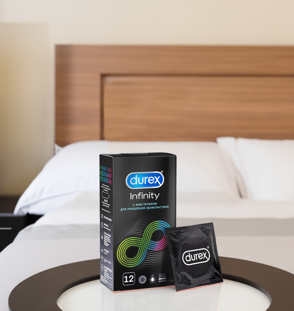 Презервативы Durex Infinity для продления полового акта, а также предотвращения преждевременной эякуляции. Презервативы Durex Infinity содержат смазку с добавлением анестетика (бензокаина) внутри презерватива и обычную силиконовую смазку снаружи. Для продления полового акта, а также предотвращения преждевременной эякуляции. Благодаря технологии производства не имеют неприятного запаха. Все предусмотрено для того, чтобы вы могли расслабиться и наслаждаться безопасным сексом. Номинальные размеры: длина – 195 мм, ширина – 56 мм. Дерматологически тестированы. 100% проверены электроникой.