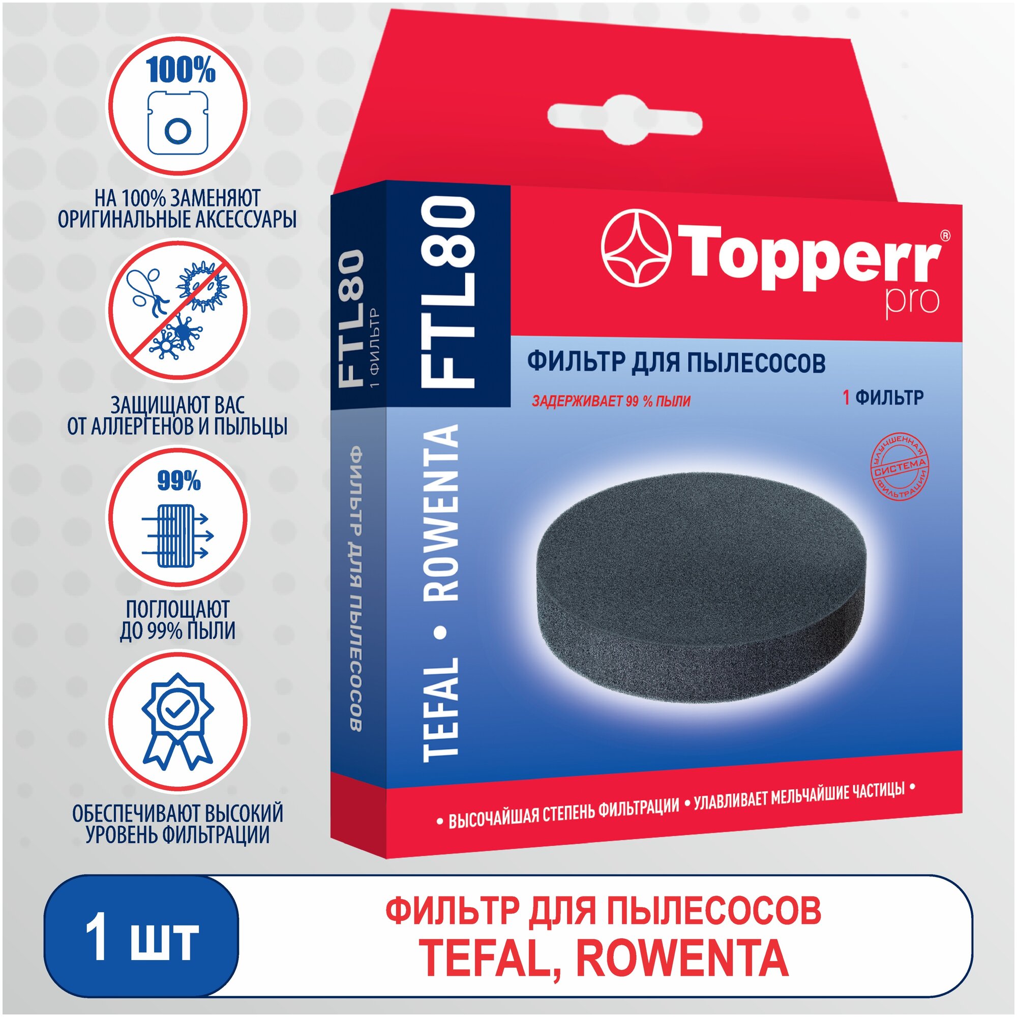 | Прочие особенности и свойства | Фильтр Topperr FTL 80 станет вашим незаменимым помощником при проведении генеральной уборки помещений. Характерная особенность данного аксессуара заключается в обеспечении повышенной степени защиты двигателя от попадания крупных загрязнений. Таким образом, значительно увеличивается эксплуатационный период пылесоса., Topperr FTL 80 придется как нельзя кстати всем тем, кто страдает аллергическими реакциями, ведь с его помощью вы сможете удалить из помещений пылевые частицы и различные бактерии. Ориентирован на последующую эксплуатацию с различными моделями пылесосов от ROWENTA и Tefal. Замену аксессуара необходимо производить по мере его загрязнения. |