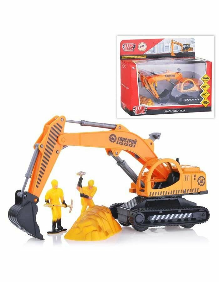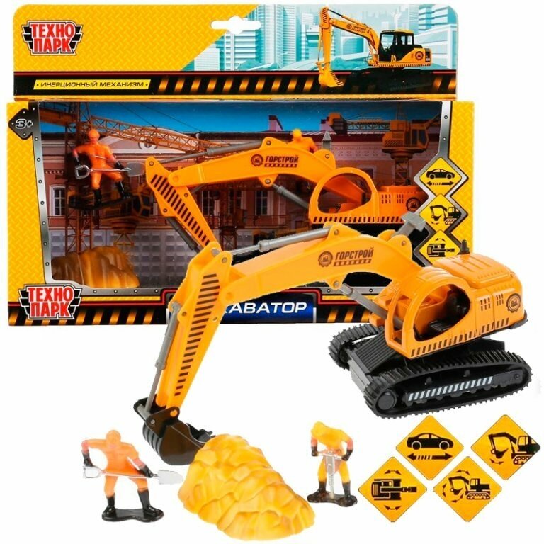 Металлический экскаватор с подвижными элементами – прекрасный образец реалистичной спецтехники. Эта масштабная модель подойдет не только для игр, но и для коллекции. Ребенок сможет проявить фантазию и организовать интересное развлечение, играя с этим экскаватором. В набор также входят фигурки рабочих, что разнообразит игровой процесс. Игрушка копирует все особенности оригинальной техники. Она может сама ехать вперед, так как колеса оснащены инерционным механизмом. Прорезиненные гусеницы с протектором легко преодолевают неровности.