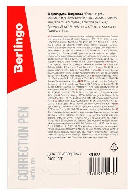 Сервис сравнения цен СкидкаГИД предлагает сравнить цены на товар «Корректирующий карандаш Berlingo металлический наконечник 0.8мл KR 536»