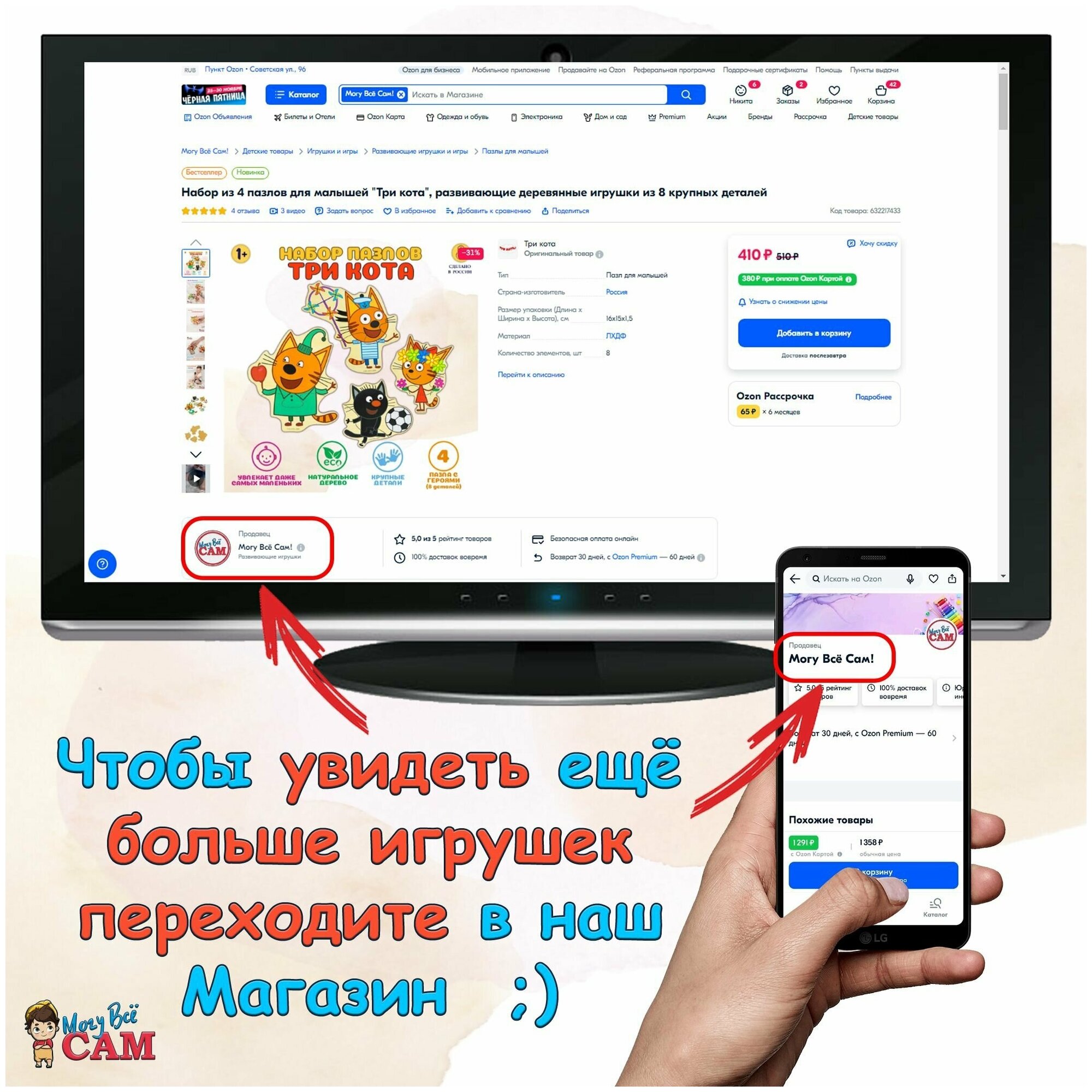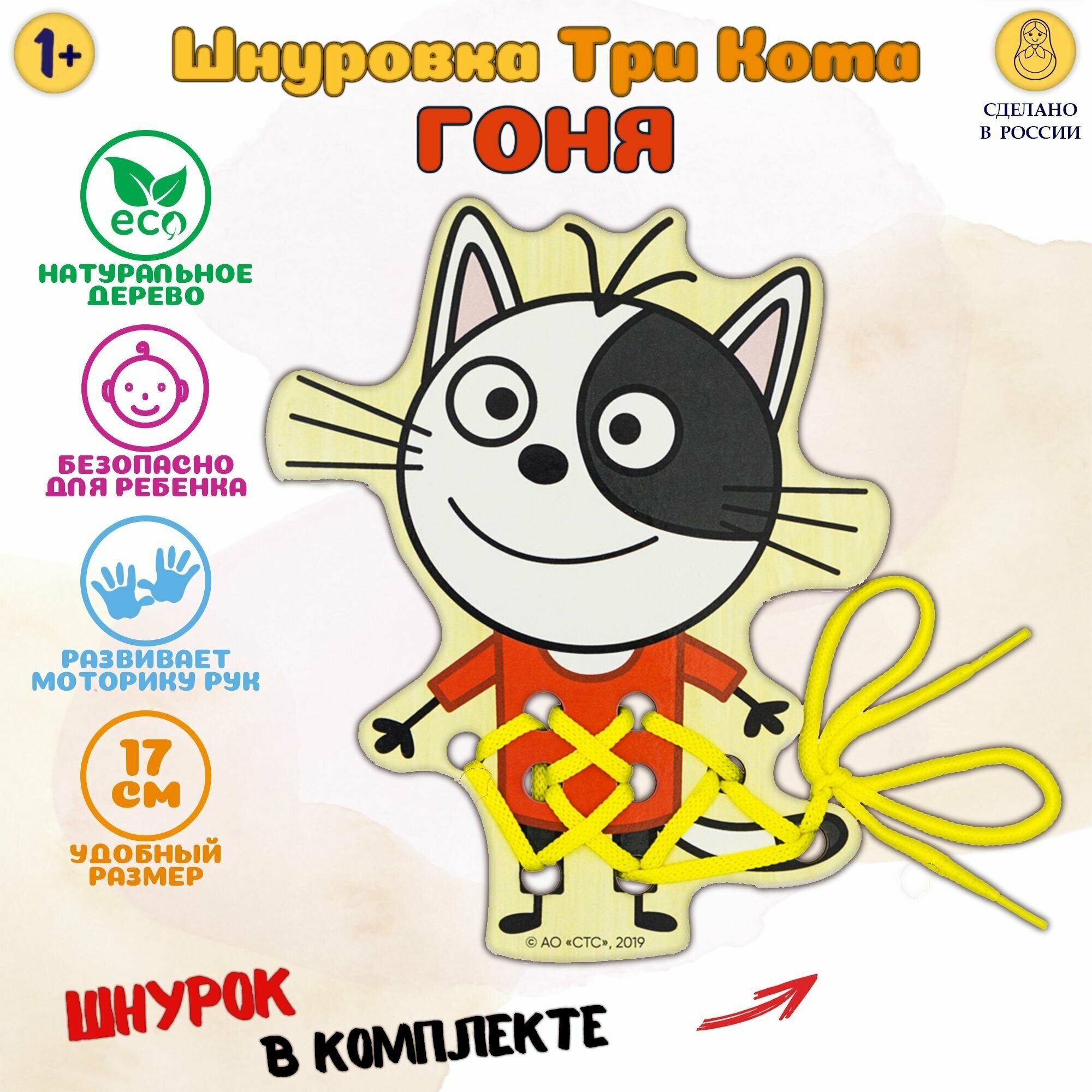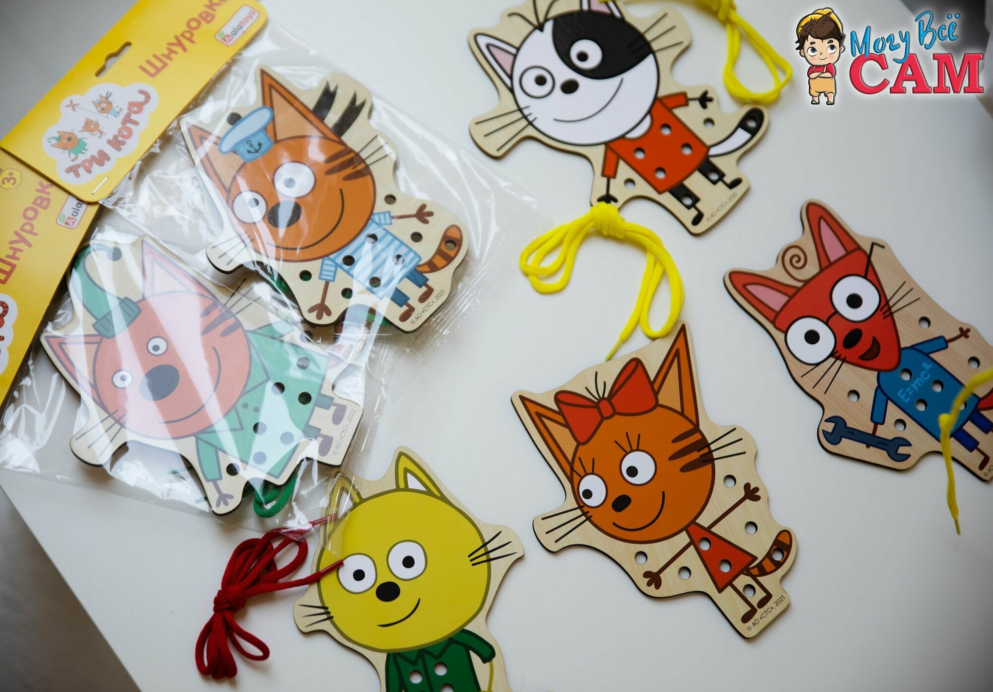 Alatoys Шнуровка Шуруп Шнуровки серии "Три кота" представляют собой изображения персонажей мультфильма на деревянной панели. В игрушке есть отверстия, в которые нужно продевать шнурок. Шнурок есть в комплекте. Шнуровка - отличный тренажер для развития мелкой моторики, усидчивости и внимания. Яркие игрушки привлекут внимание ребенка. Малыш будет старательно трудиться, захватывая шнурок пальчиками и продевая его в отверстия. Работа пальчиков влияет на развитие речи ребенка. Ребенок может создать свой неповторимый рисунок шнурком на изделии. Не забывайте хвалить ребенка за все его достижения. Тренируем речь: спросите малыша, какого цвета игрушка, как зовут любимых персонажей. Сочините свою сюжетную линию мультфильма - куда сегодня отправится Шуруп, и какие приключения ждут его в ваших фантазиях.