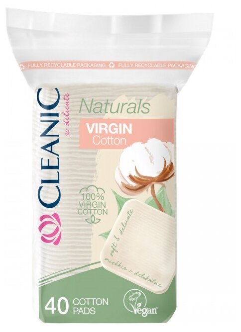Ватные диски Cleanic Naturals Virgin Cotton 40 шт.