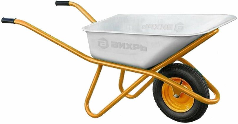 Строительная тачка Вихрь Т 110-1 73/7/4/5 используется для перевозки сыпучих материалов.