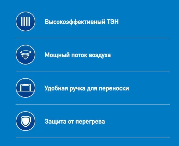 - Цена, достаточная мощность, габариты и керамический нагреватель.
