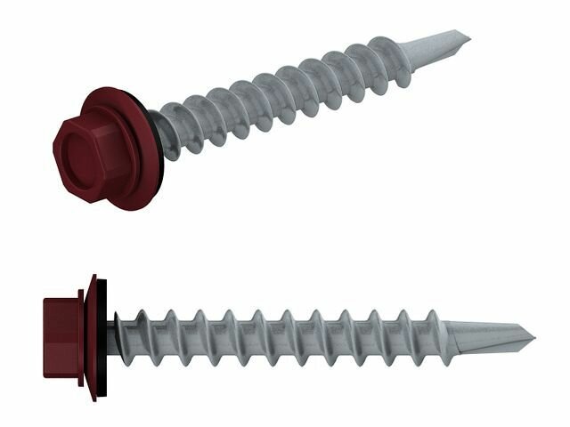 Саморез кровельный цинк шайба с прокладкой PT3 STARFIX представляет собой саморез с шестигранной головкой и частой резьбой с уже надетой металлической шайбой с резиновой EPDM-прокладкой. Используется для крепления металлочерепицы или другого похожего листового материала к металлической обрешетке. Сверло на конце позволяет засверливаться в металл до 6 мм без предварительного сверления. Изготовлен из стали и оцинкован. Головка и шайба окрашены в цвета RAL. Возможные цвета: RAL 1014, RAL 1015, RAL 3003, RAL 3005, RAL 3009, RAL 3011, RAL 5002, RAL 5005, RAL 5021, RAL 6002, RAL 6005, RAL 7004, RAL 7024, RAL 8004, RAL 8017, RAL 9003, RAL 9005, RAL 9017.