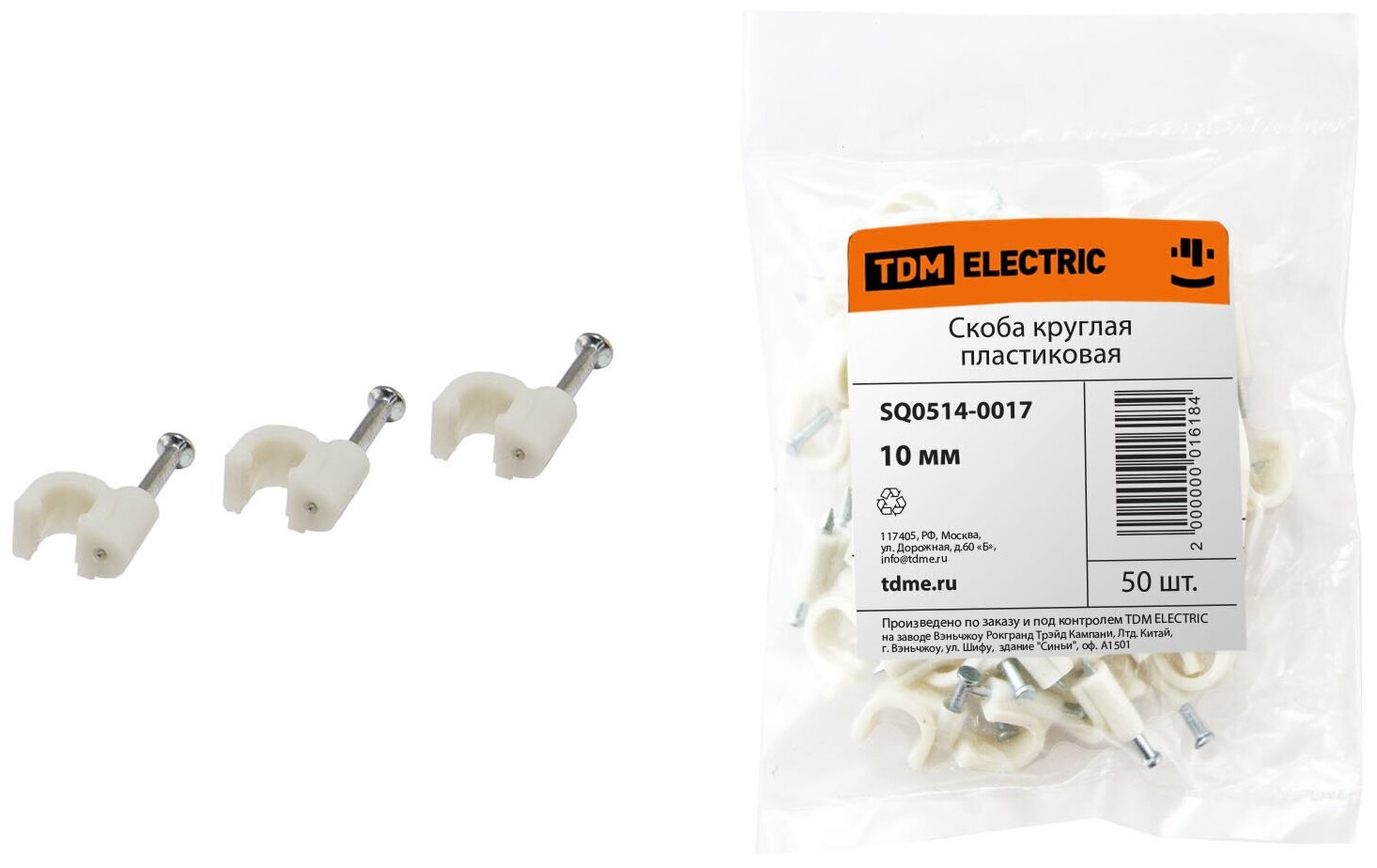 Применение:Для быстрого и надёжного крепления круглых и плоских кабелей или проводов различного назначения (силовых, телефонных, телевизионных и т. п.) в жилых и промышленных помещениях.Возможно крепление к различным поверхностям: к дереву, прессованному картону, швам кирпичной кладки, к штукатурке, бетону, кирпичу.Преимущества:Широкий типоразмерный ряд: до 35 мм.Скобы выпускаются в двух исполнениях – полукруглые и плоские.Поставляются с гвоздём.Гвоздь уже вставлен в скобу, что повышает удобство и скорость монтажа.Материалы:Скоба - гибкий негорючий ударопрочный полипропилен.Гвоздь - закаленная оцинкованная сталь.