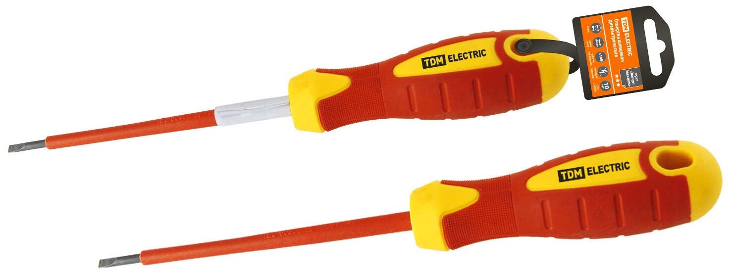 Назначение:Для всех видов электромонтажных работ, в том числе под напряжением до 1000 В переменного и постоянного тока.Применение:При сборке конструкций и цепей под напряжением до 1000 ВДля регулировки электротехнических устройств под напряжением.Преимущества:Удобная изолирующая рукоятка для длительной и безопасной работы.Намагниченный наконечник для удержания крепежа.Полный ассортимент наиболее востребованных видов отверток.Удобный подвес для размещения в торговом зале, который содержит всю необходимую информацию о преимуществах продукта и типе отвертки, а также штрих-кодМатериалы:Хром-ванадиевая сталь CR-VИзолирующие ПВХ и мягкая резина