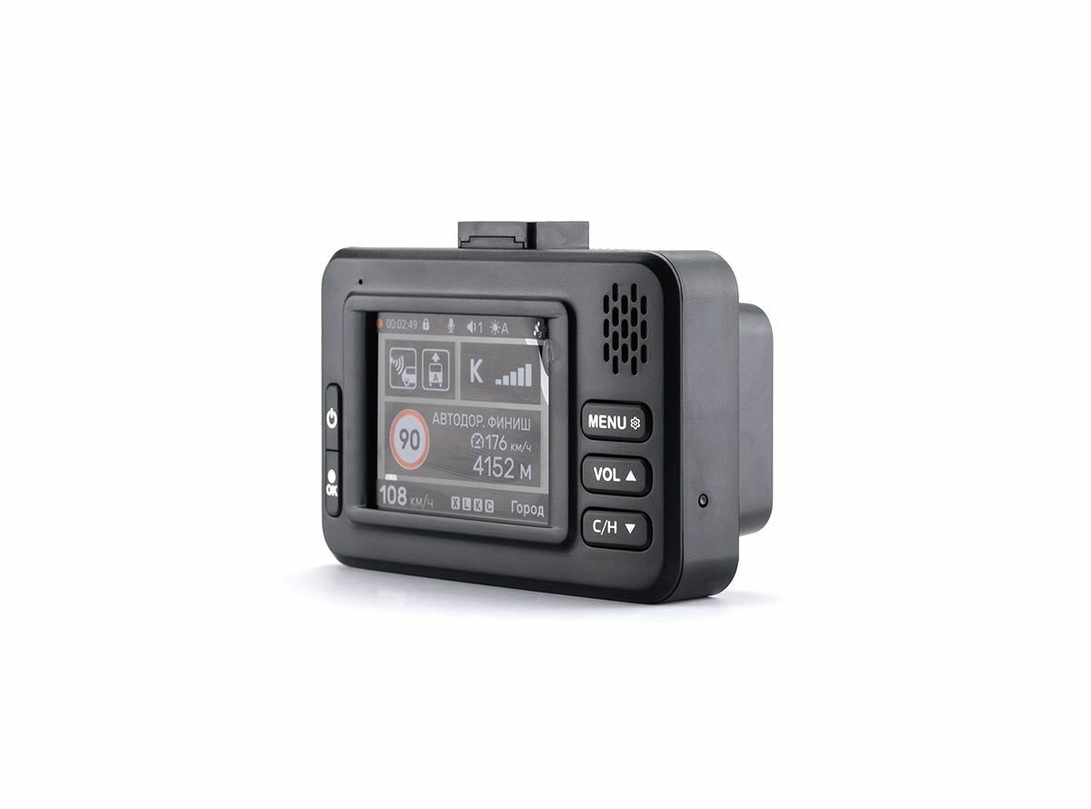 Регистратор с радар детектором и GPS. Изготовлен качественно. Установил скачанное с сайта обновление. К стеклу крепится хорошо. Регулировка наклона есть. Крепление быстросъёмное. Дисплей яркий, звук и голос ненавязчивый. Флешка на 32 со скоростью 10 - работает.