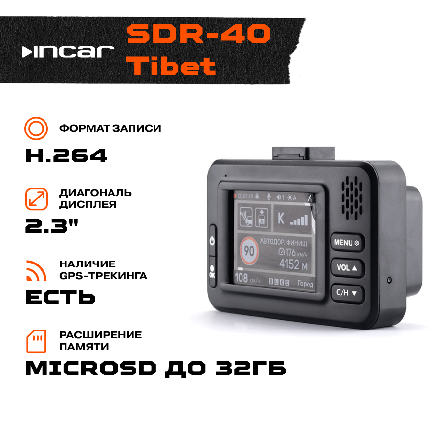 👉 INCAR SDR-40 видеорегистратор, антирадар с GPS-антенной