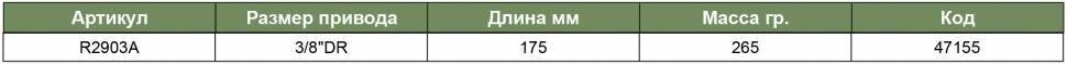 Рукоятка трещоточная 3/8д. DR, 36 зубцов, Jonnesway 170 мм применяется для гаек с правосторонней и левосторонней резьбой. Она используется, чаще всего, для ремонтных работ с автотранспортом. Трещотка подходит и для работ в труднодоступных местах.Особенности трещотки Jonnesway Долгий срок службыИнструмент сделан из хромованадиевой стали, что делает его более прочным и долговечным. УниверсальностьБлагодаря переключателю на трещотке, вы можете работать с гайками как с правосторонней, так и с левосторонней резьбой.ХарактеристикиДлина, мм-170Трещотка-естьПокрытие-антикоррозийноеМатериал-стальДиэлектрическое покрытие-нетКоличество зубьев, шт-36Шарнирный механизм-нетПосадочный квадрат-3/8 дюймаУдлинитель-нетВес нетто, кг-0,32Вид-дюймовыйПреимущества трещотки Jonnesway Длина 170 мм; Небольшой вес (всего 265 г); Атласная полировка; Ширина 32 мм, высота 30 мм.