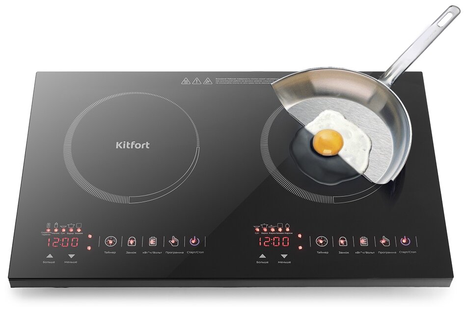 Индукционная плита KITFORT готовит в 2 раза быстрее по сравнению с обычными электрическими и газовыми плитами благодаря современной технологии индукционного нагрева. Высокий КПД плиты KITFORT, составляющий 90 %, обеспечивает низкое энергопотребление при сохранении высокой скорости нагрева. 10 уровней мощности, 10 температурных режимов и 6 выделенных программ приготовления пищи дают невероятное количество возможностей индукционной плиты KITFORT по сравнению с другими видами плит.