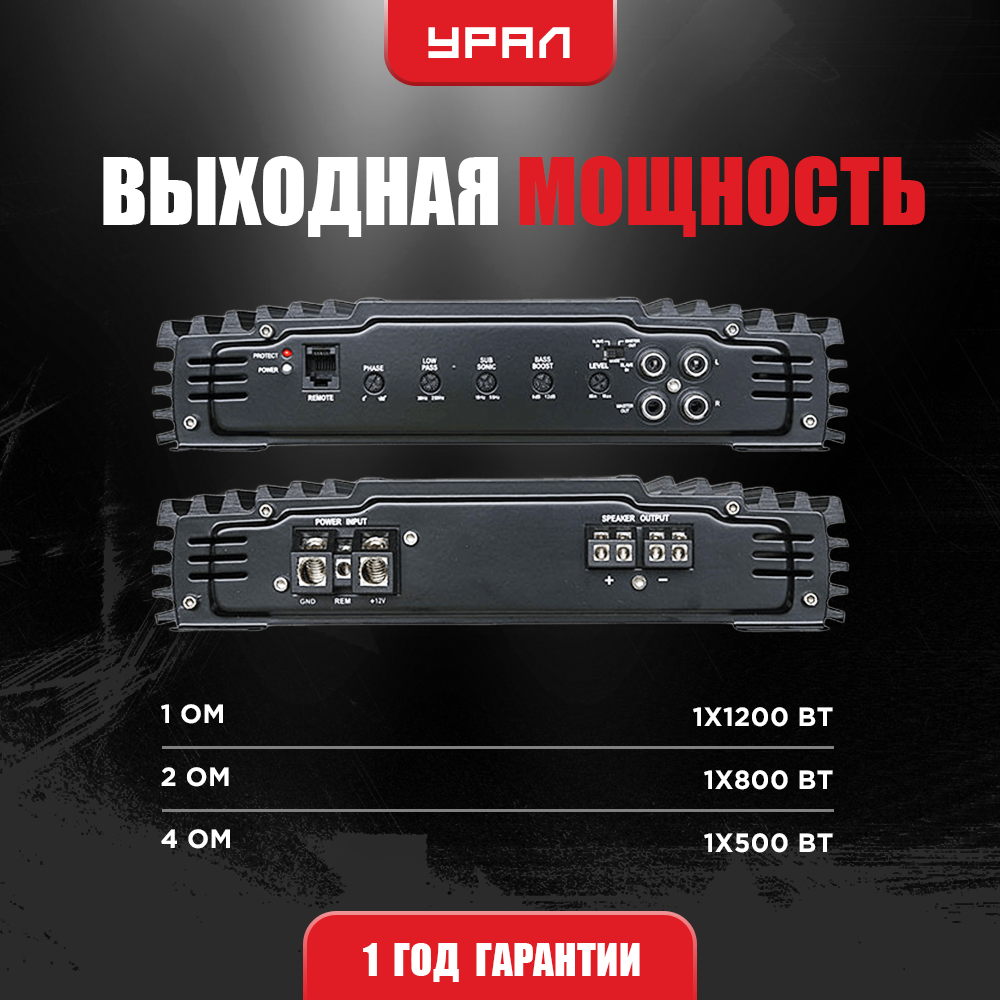 Усилитель Ural - это стабильная работа при нагрузке на 1 Ом. Регулируемые subsonic (15 Гц - 55 Гц). Плавная регулировка фазы. Выпосной регулятор баса с индикацией клипка (в комплекте).