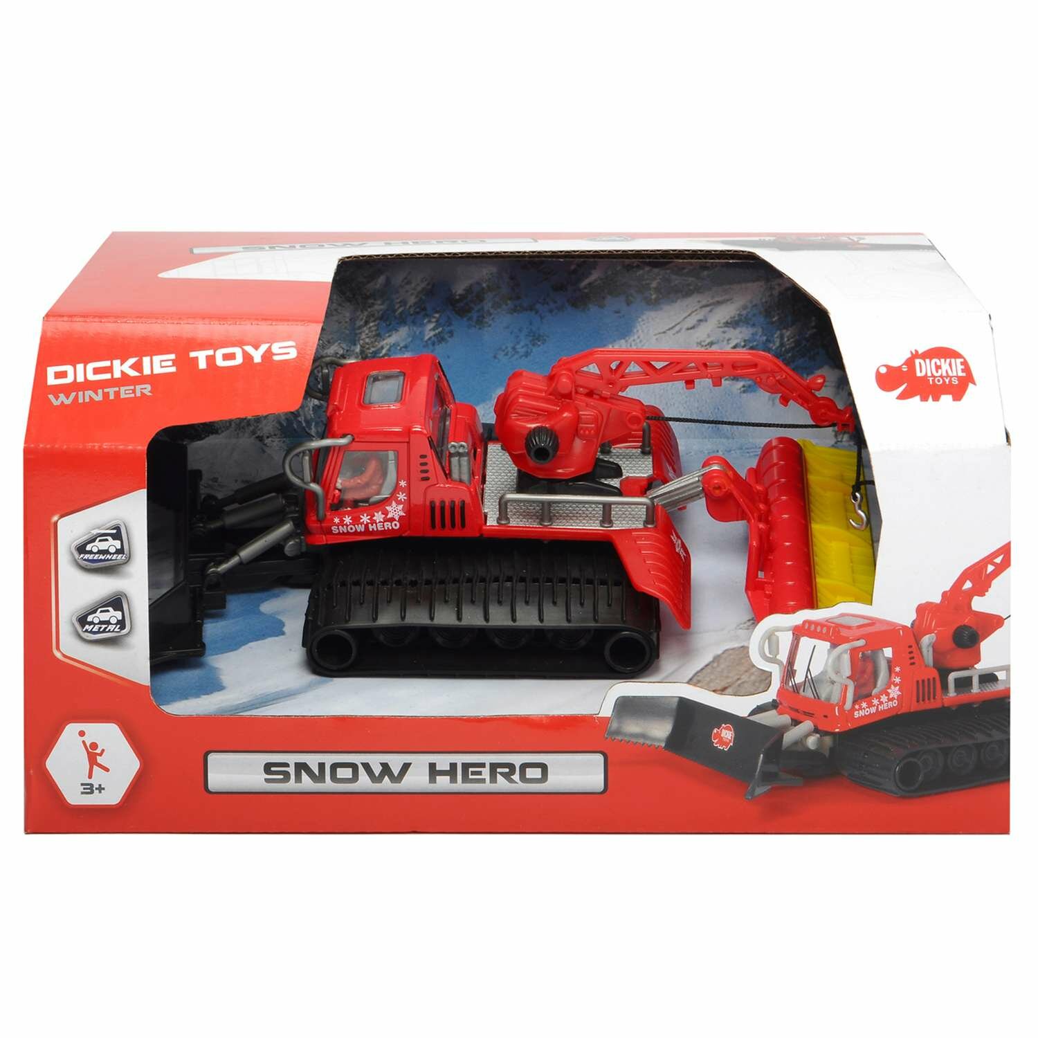 Когда его гусеницы приводятся в движение и он движется по снегу , детские глаза становятся все больше и больше. С Ратраком Dickie Toys дети становятся снегоуборщиками дома. В соответствии с оригиналом игрушка имеет подвижное лезвие, нож и кран с крючками.