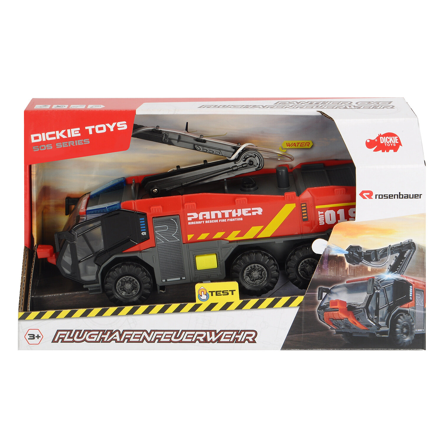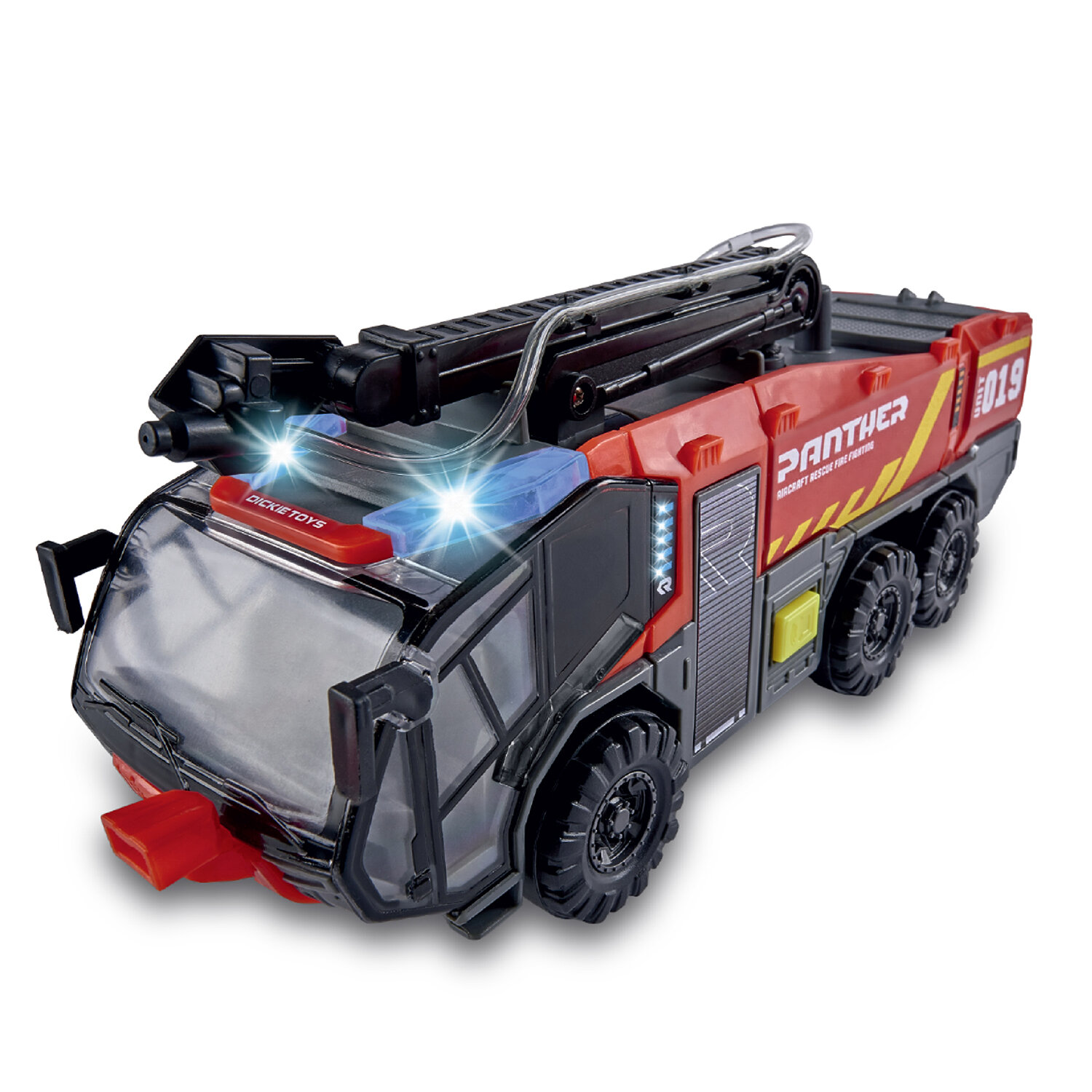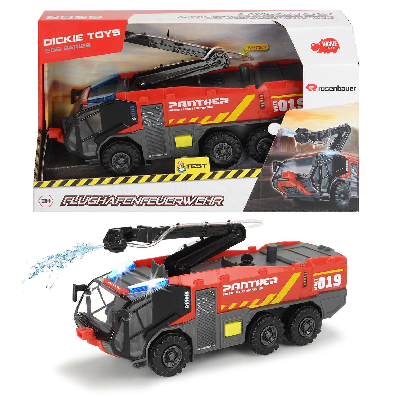Аэропорты должны быть готовы к любым ситуациям. Пожарная бригада Dickie Toys всегда готова к действию. Детализированный грузовик с колесами спроектирован в стиле пожарной машины Rosenbauer. и имеет исключительно реалистичный интерьер в кабине водителя. Изюминкой является движущийся гасящий рычаг с функцией распыления воды, который гарантированно обеспечит часы бесконечного веселья на открытом воздухе. Он также имеет световые и звуковые эффекты.