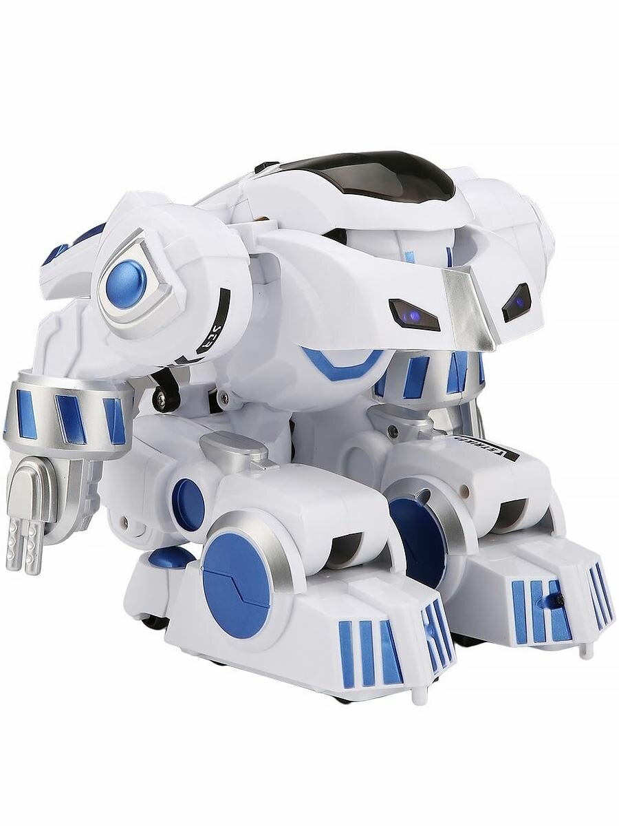 В игрушке предусмотрены такие функции, как программирование и регулировка громкости. Игра сопровождается яркой подсветкой глаз робота.