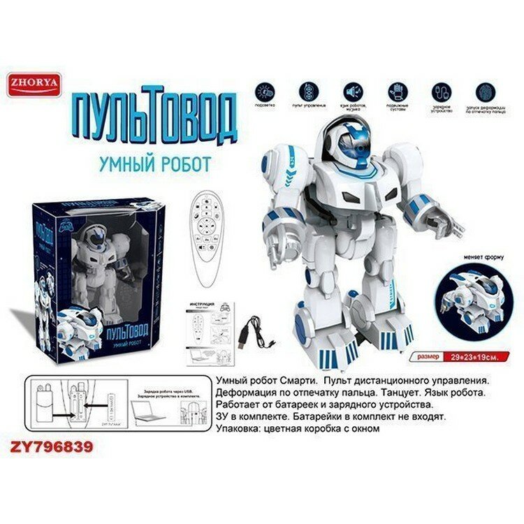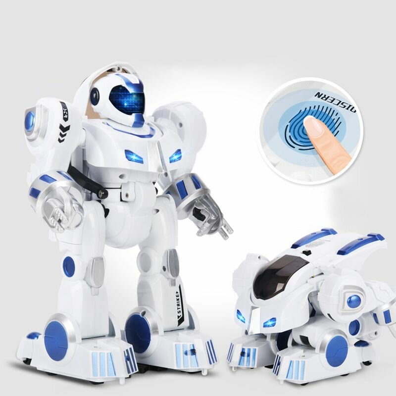 С помощью пульта управления игрушке можно задавать следующие команды: идти по направлению вперёд и назад (медленно или ускоренно), поворачивать влево и вправо, трансформация, речь робота, 3 вида танцев под музыку, патрулирование, запуск по отпечатку пальца.
