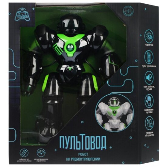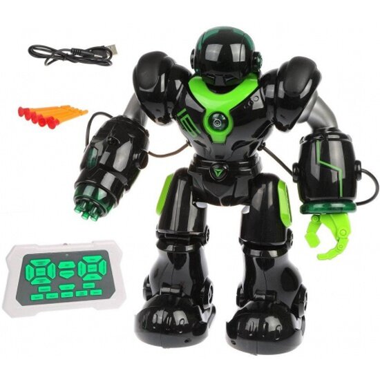 Робот воспроизводит забавные звуки, музыку и песни, а также стреляет стрелами с присосками (в комплекте 5 штук) и танцует. Все эти команды задаются игрушке нажатием соответствующих кнопок на пульте управления.